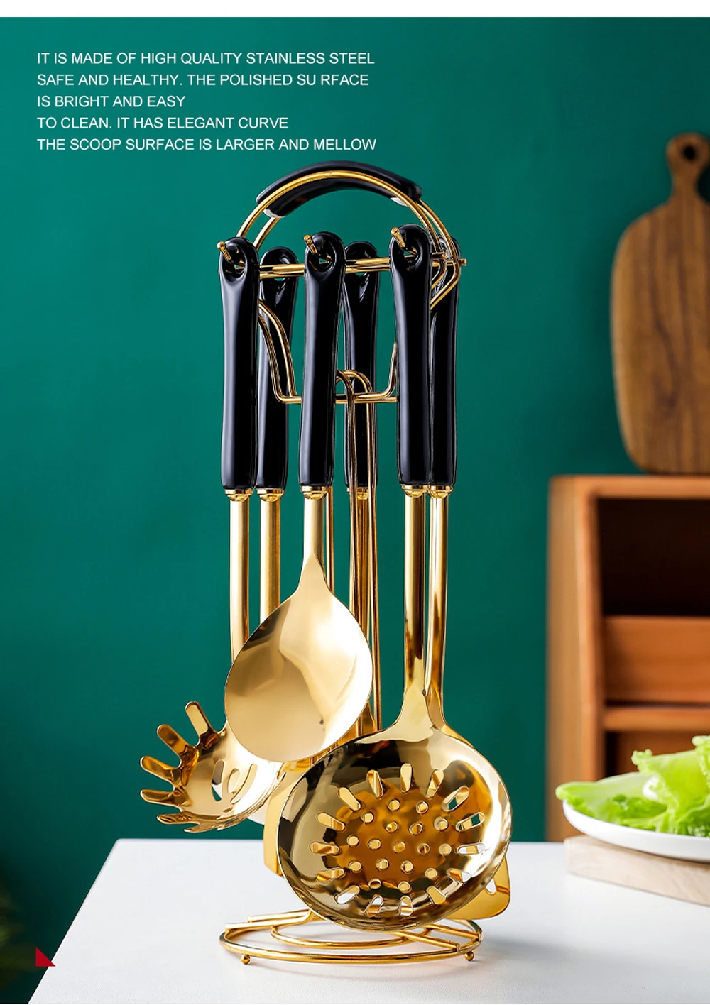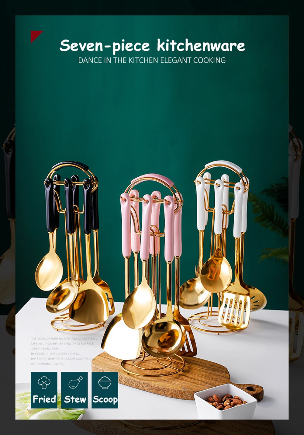 Посуда из нержавеющей стали в скандинавском стиле, наборы кухонной посуды, кухонные инструменты, керамическая ручка, крючок для хранения, роскошная металлическая ложка-лопатка