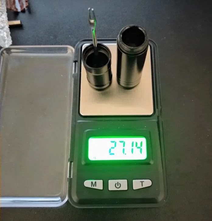 Пришло за 2 недели, упаковано было хорошо. Но вес великоват, можно и полегче было сделать. Очень качественный футляр. Из алюминия. Даже слишком качественный, так как очень тяжёлый для такого функционала. Внутрь помещается одна "кассета" жгутов. Вместе с ним вес 29 грамм.