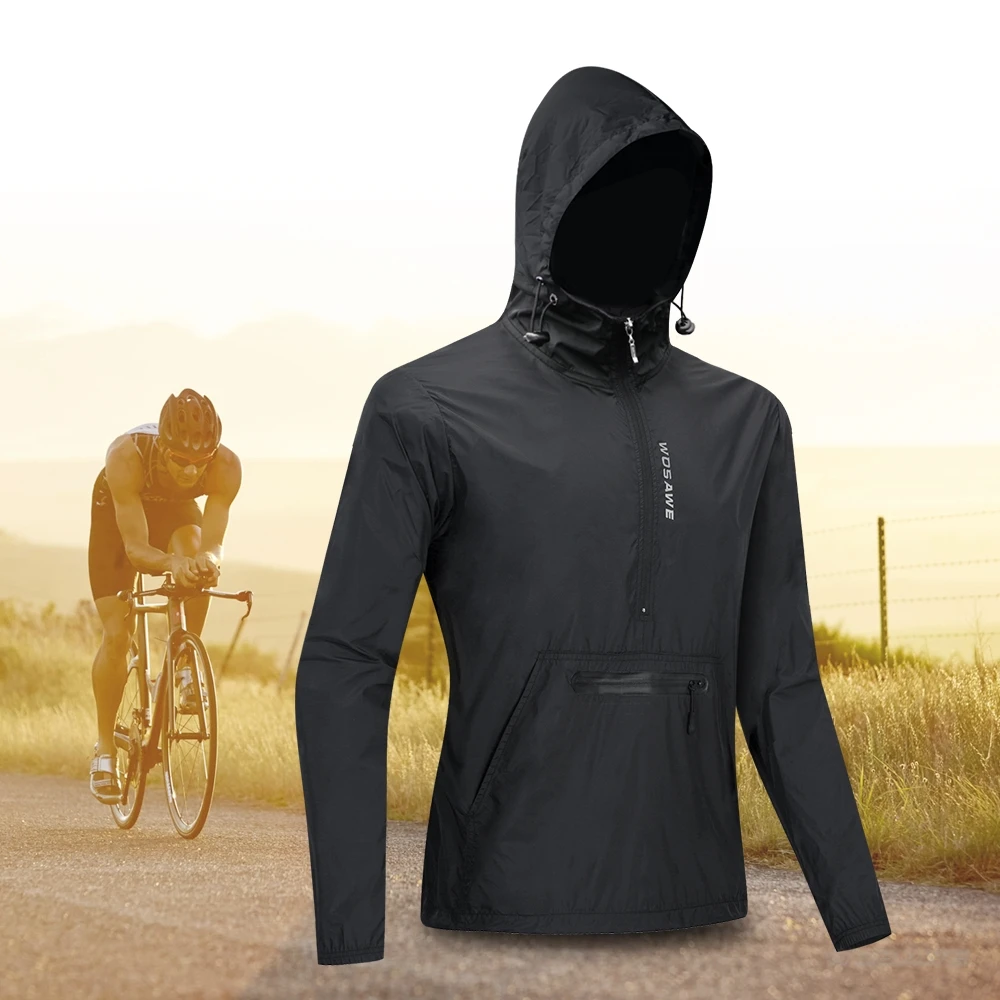 Велосипедные куртки WOSAWE с капюшоном, черные приталенные непромок...