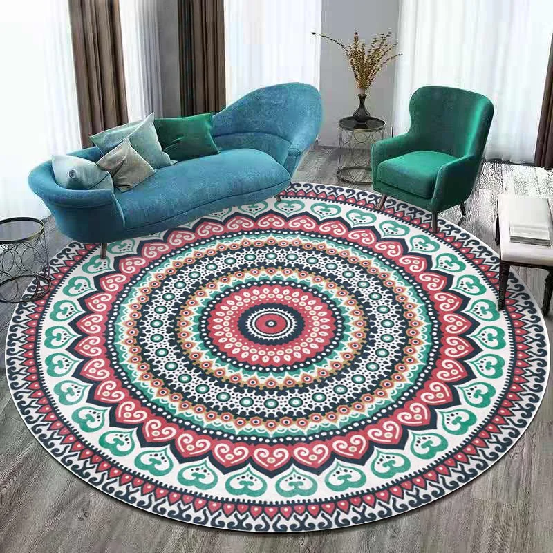 Круглые коврики для спальни, с изображением пузырьков, красного, зеленого цвета, мандалы, в этническом стиле, для гостиной, домашнего декора, мягкие ретро-коврики