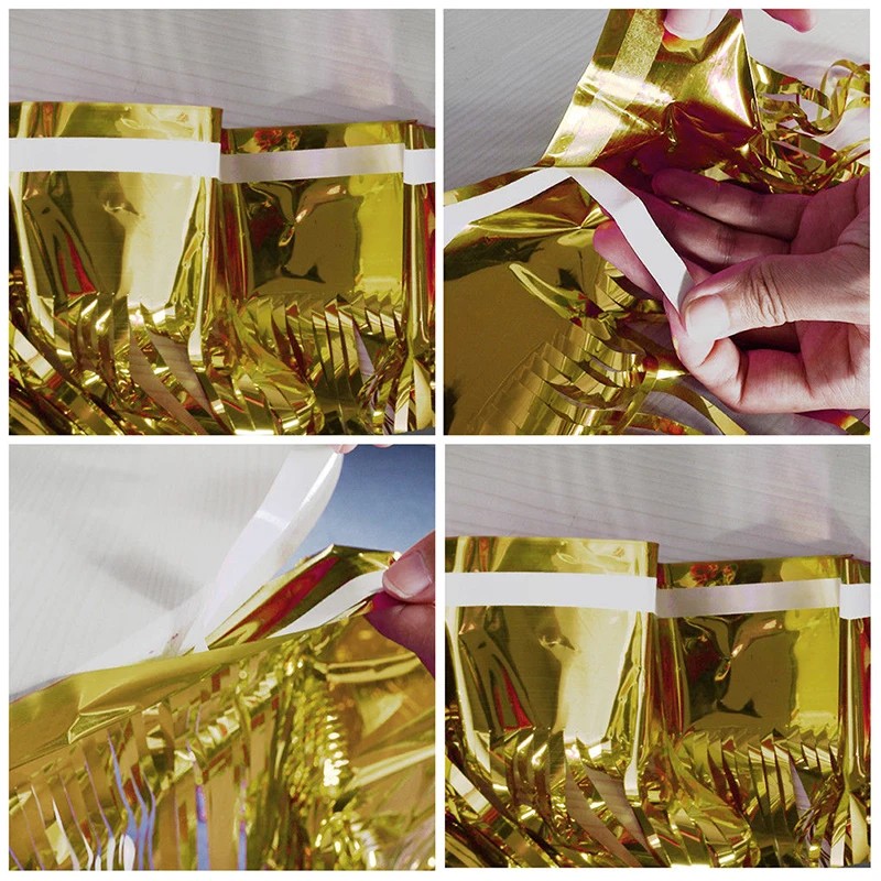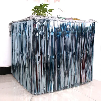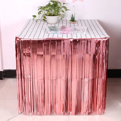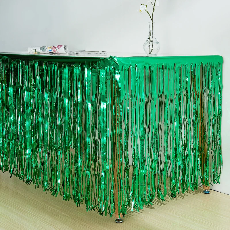 Блестящая юбка для стола, металлик, 275*75 см, Гавайские украшения для свадьбы, гавайская вечеринка, украшения из фольги