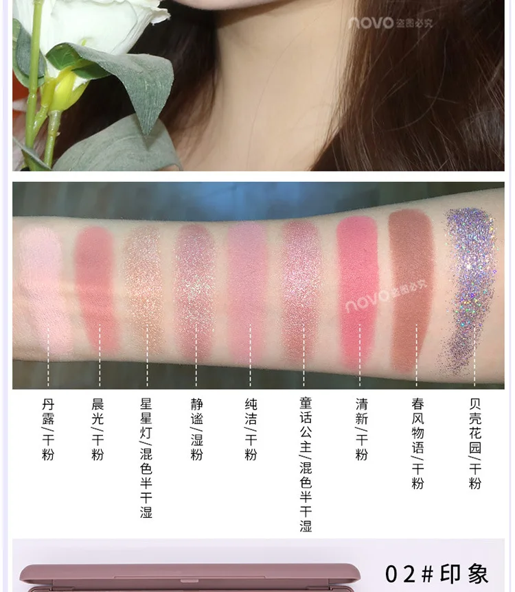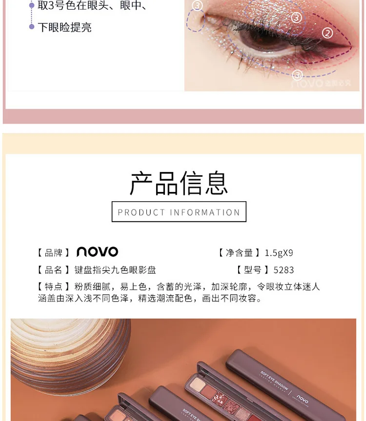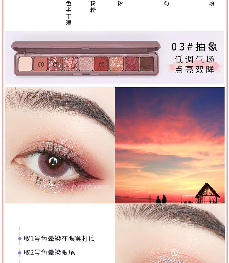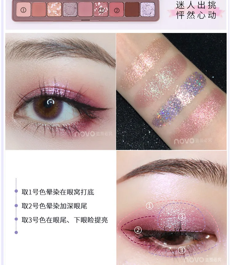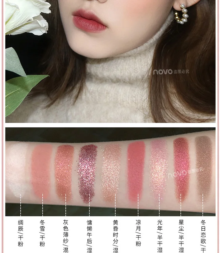 NOVO 9 цветов, Модная палитра теней для век, матовые блестящие тени...