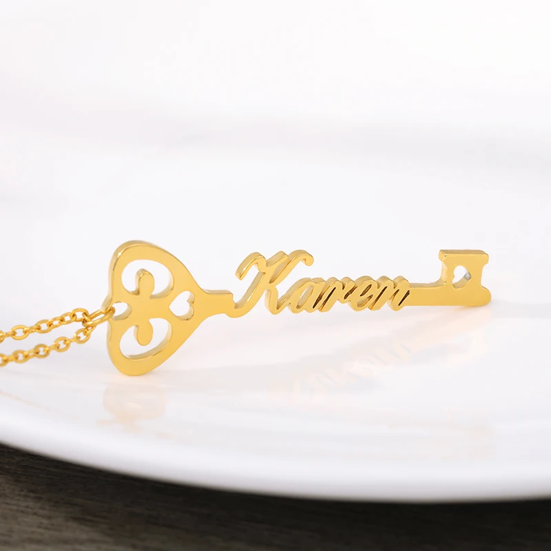 Заказной ключ имя ожерелья для женщин, нержавеющая сталь, золотое о...