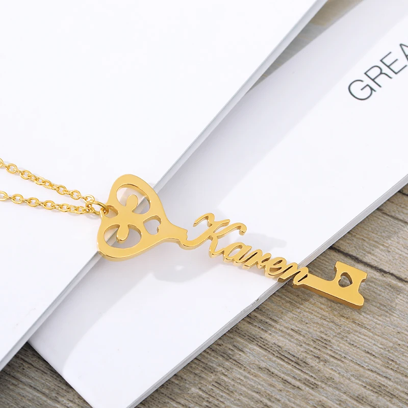 Индивидуальное ожерелье в форме ключа в форме сердца, колье ручной работы из нержавеющей стали, ювелирные изделия, подарки для лучших друзей