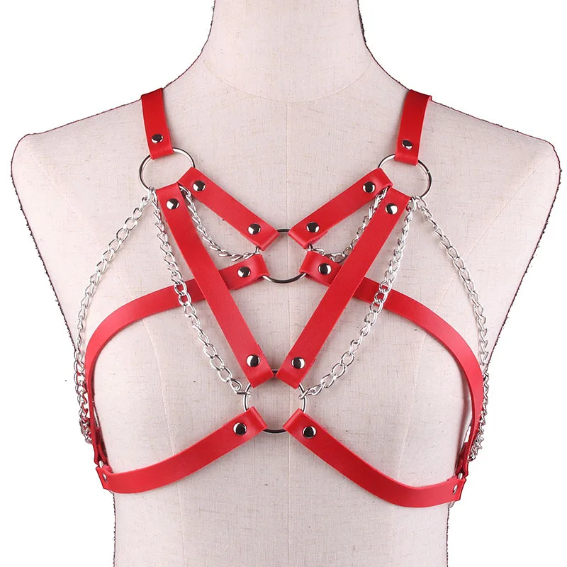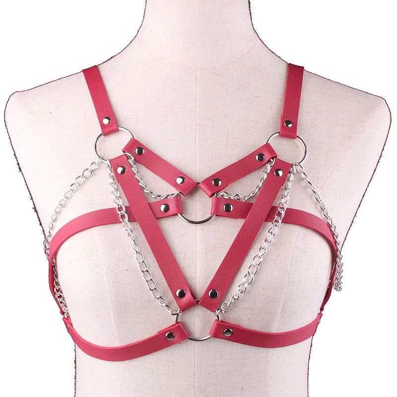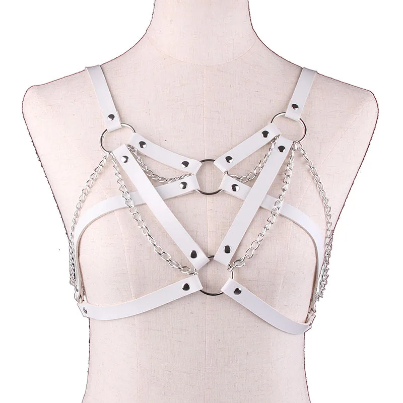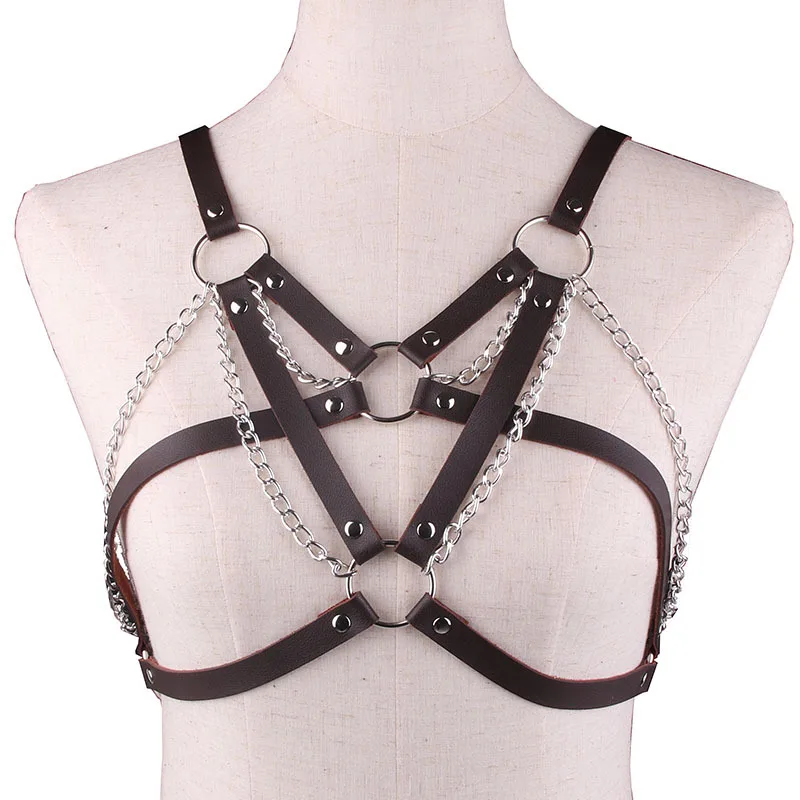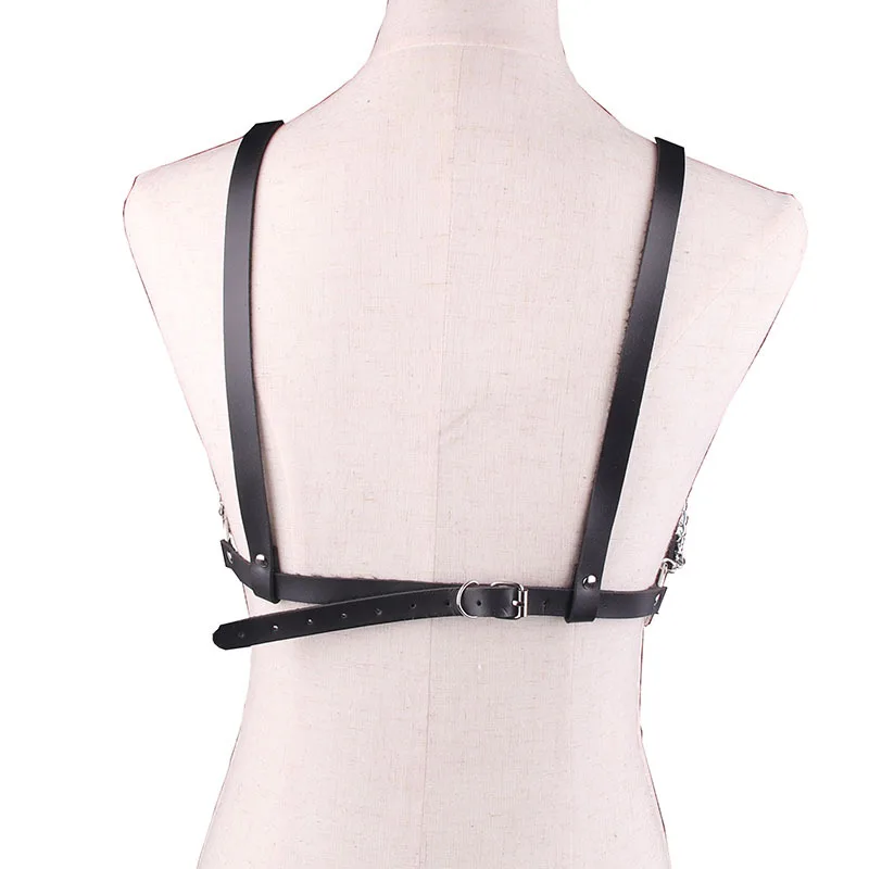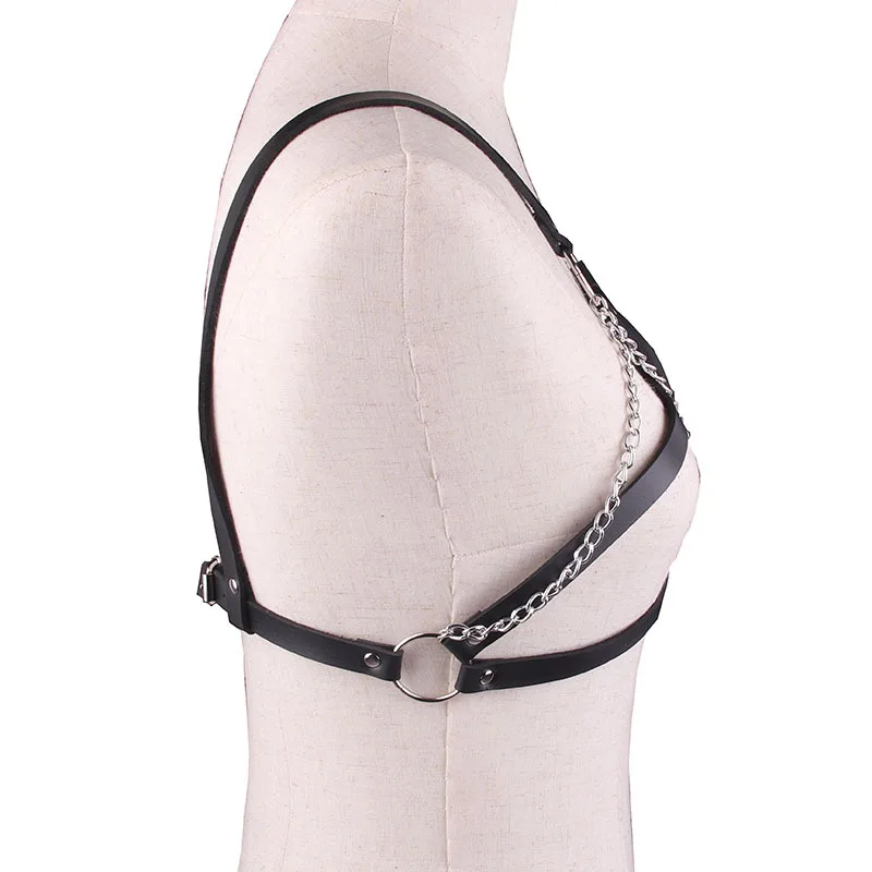 Женский кожаный бюстгальтер Goth, с металлическими цепочками, в готическом стиле
