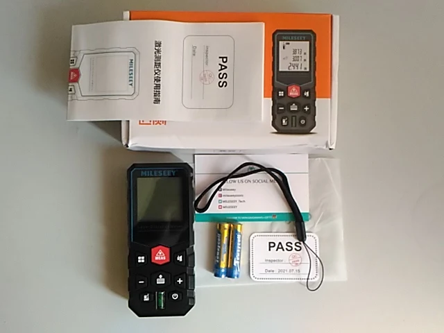 Дошол лаз.дальномер за 4 дня это рекорд акамуляторы 900mah функционал офигенный а главное удобное расположение кнопок ,колёсико прорезининое мериет чётко два раза проверил размер один в один, уровень работает во всех плоскостях рулетки звук работает в трёх режимах без звука,со звуком,со звуком и голосом а так же есть регулировка звука по громкости всё супер.