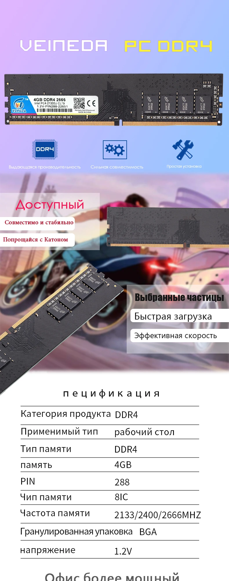 VEINEDA память оперативная память ddr 4 4 Гб DDR4 2666 2400 2133 МГ...