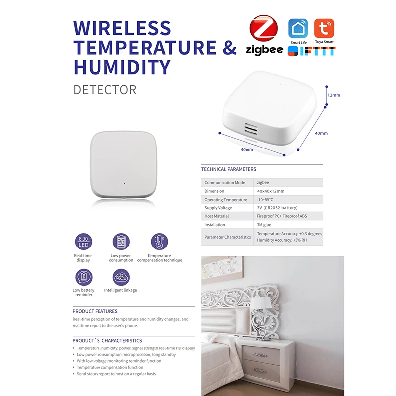 Датчик температуры и влажности Zigbee Tuya, Wi-Fi, беспроводное управление, умное Обнаружение температуры для Google Home Alexa