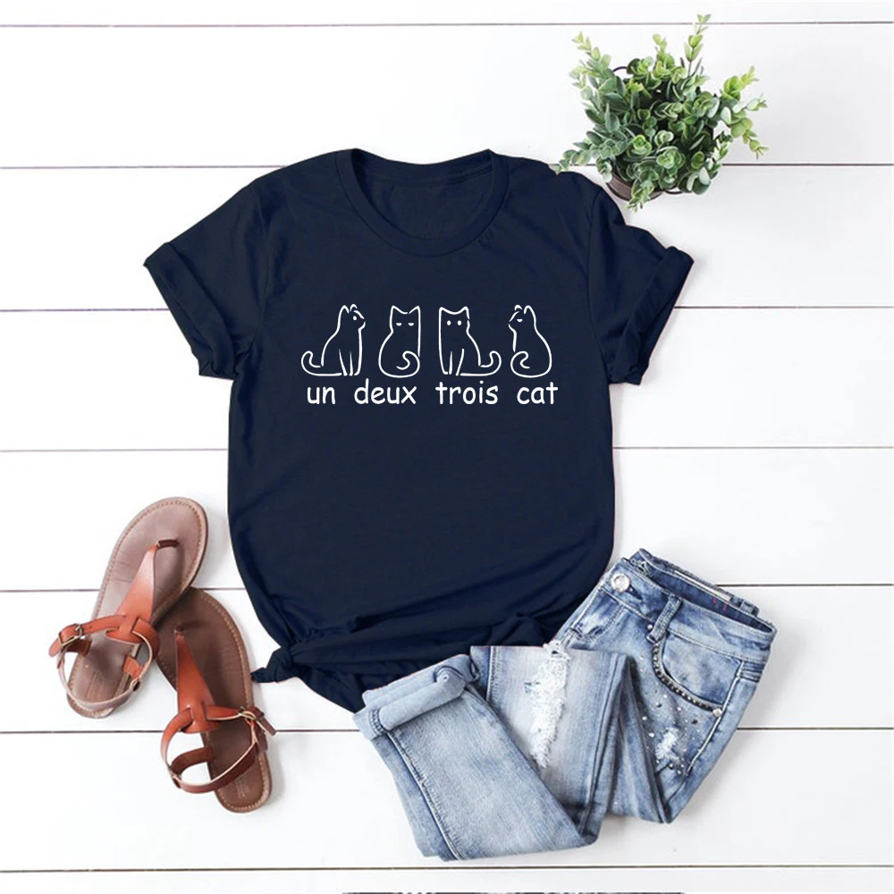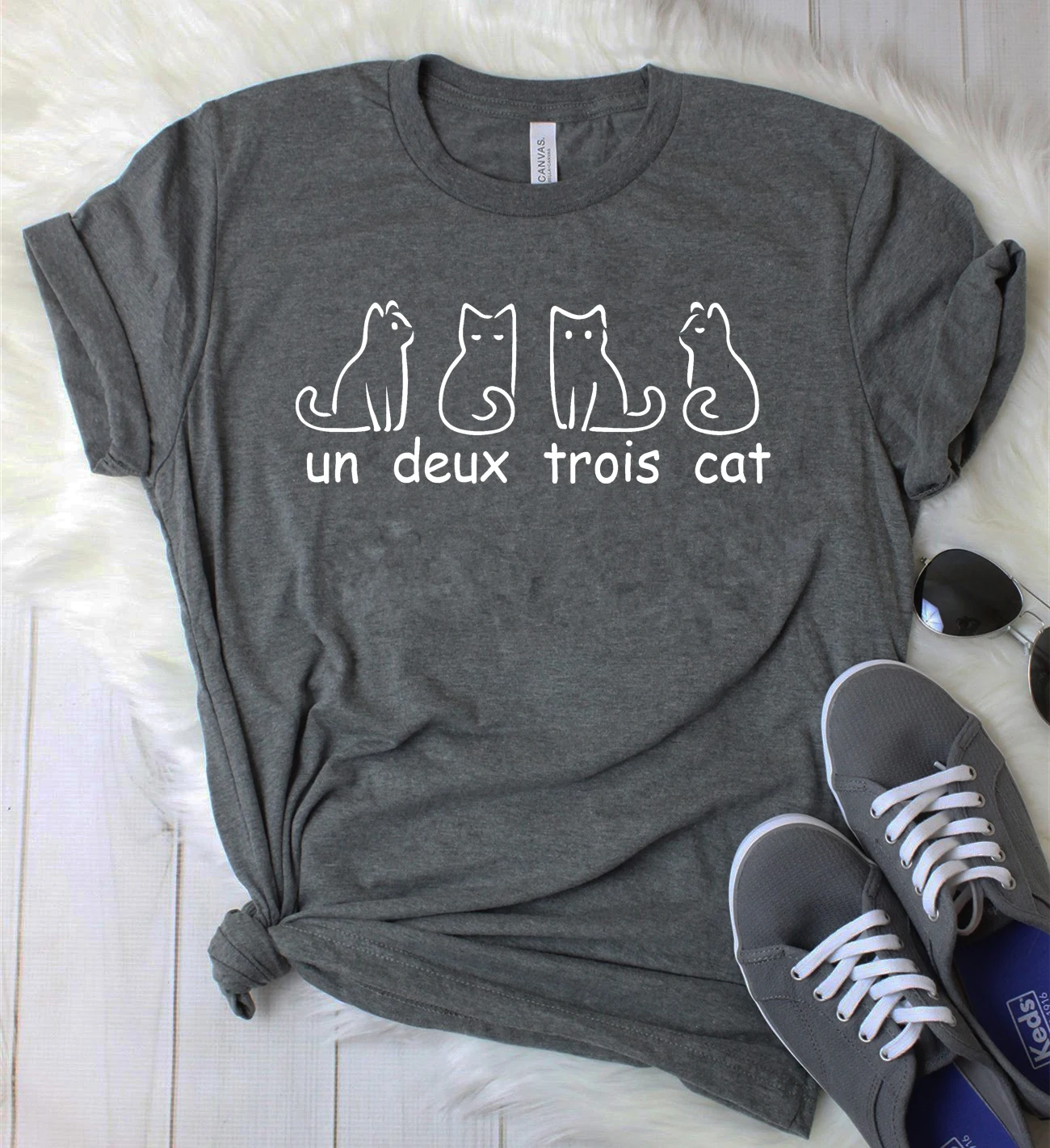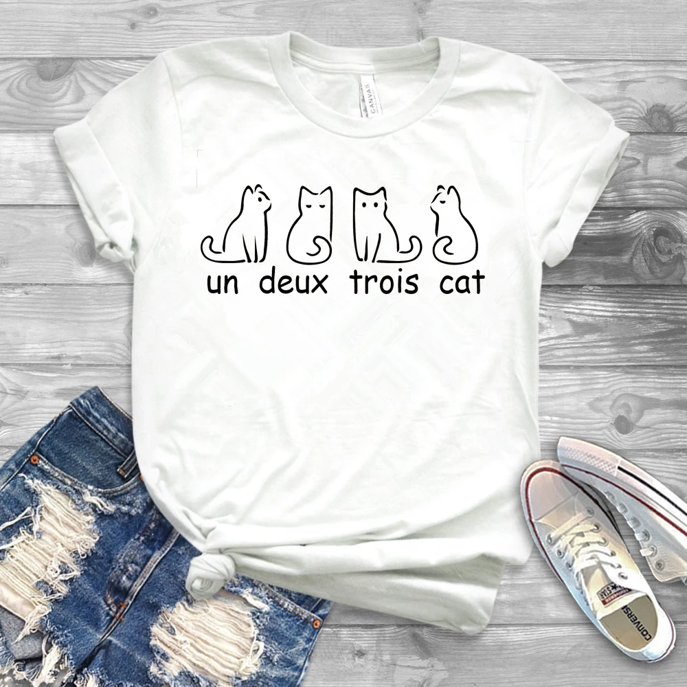 Un Deux Trois, футболка с кошкой, французский Кот, милая кошка, футболка с кошкой для мамы, подарок для любимой кошки