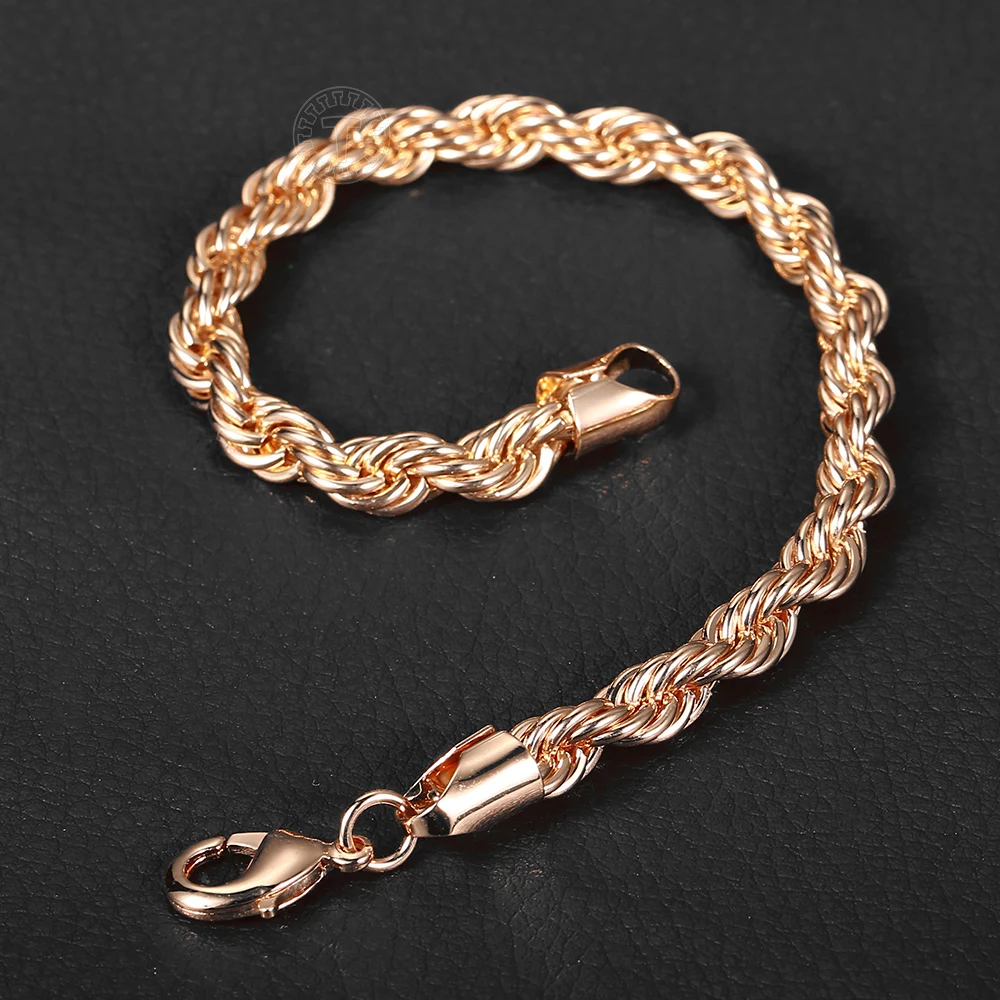 Браслет из розового золота 585 пробы, 56 мм, плетеная цепочка звено веревки пробы, для женщин и мужчин, ювелирные изделия, для свадьбы, вечеринки, новый, CB47, 2020