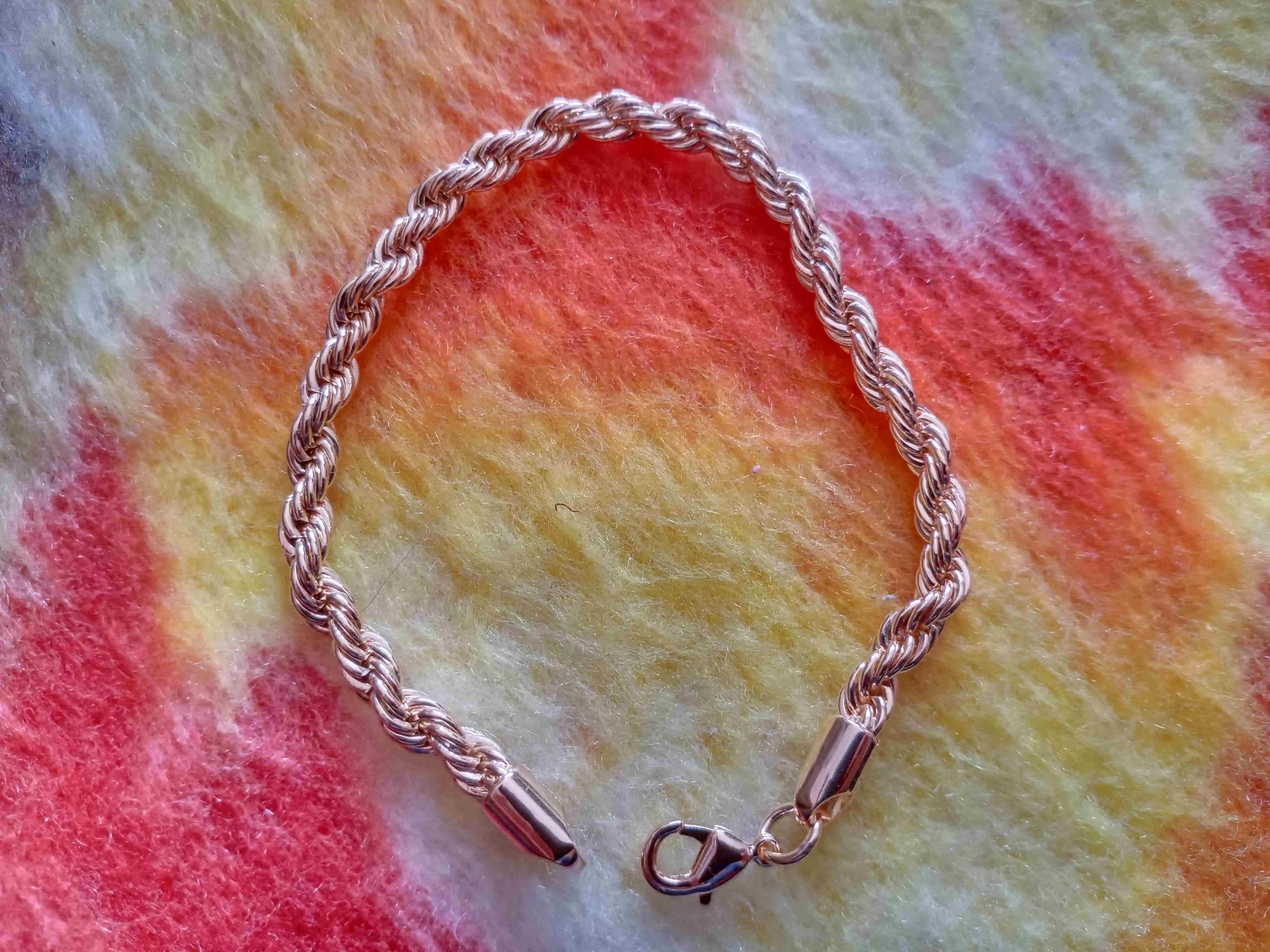 Браслет не очень хороший: криво скручен и колечки с крепежами выглядят не аккуратно. Продавцу пять звезд за классную упаковку и быструю доставку. Несмотря на среднее качество изделия у данного продавца буду заказывать другой товар. Спасибо.
