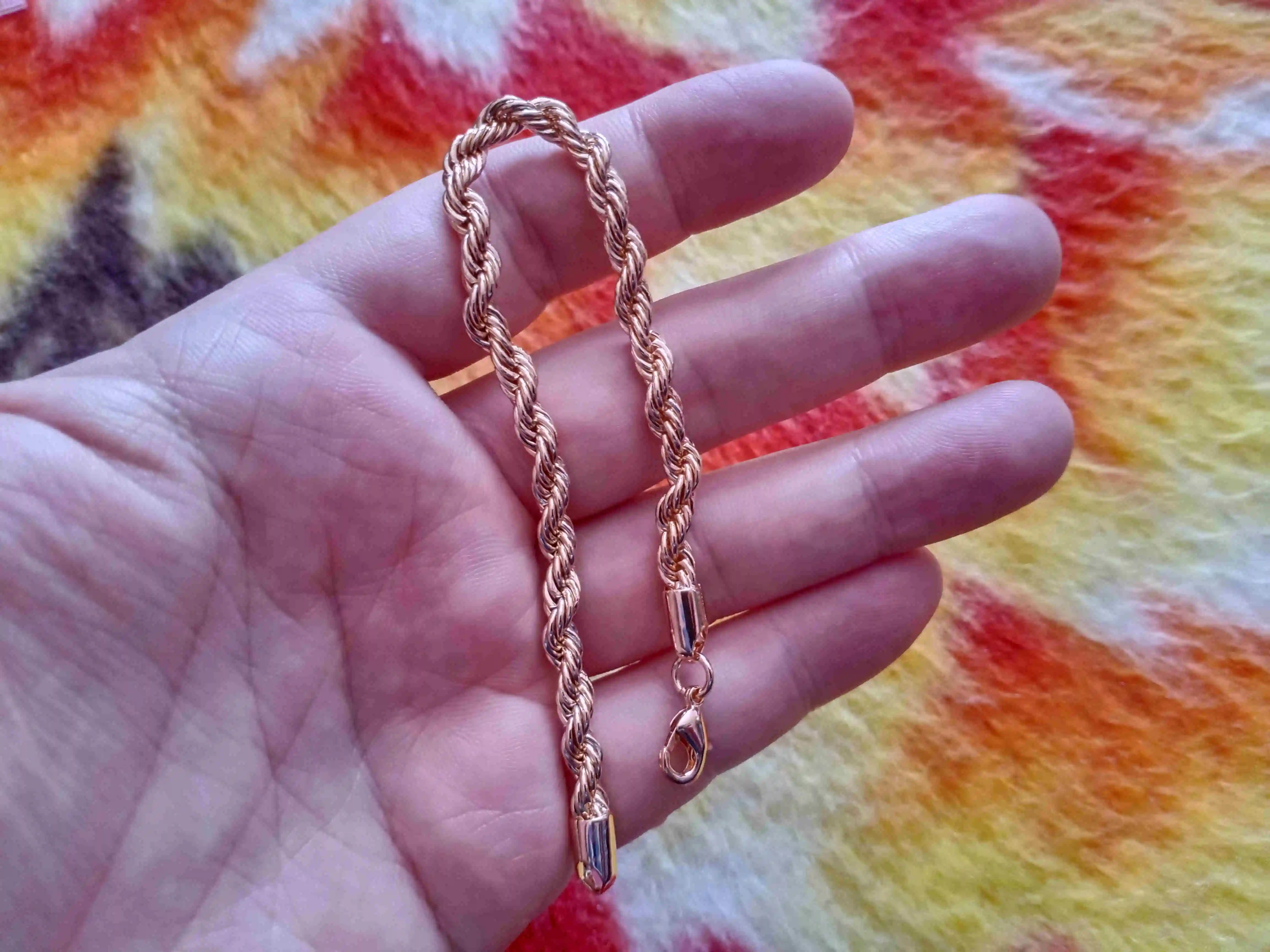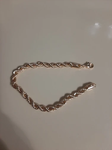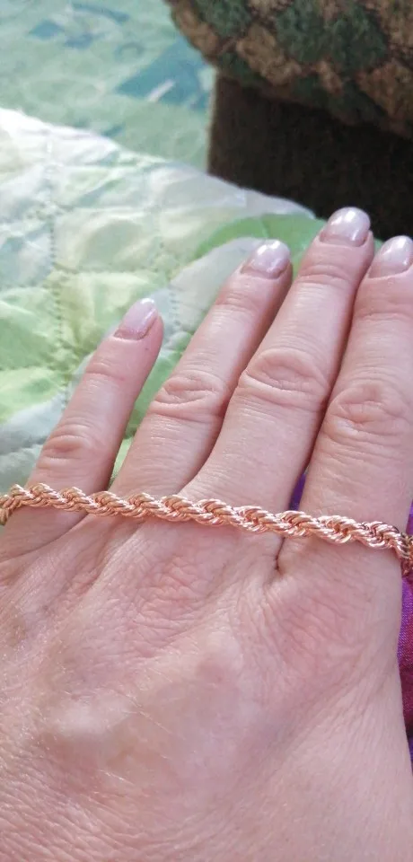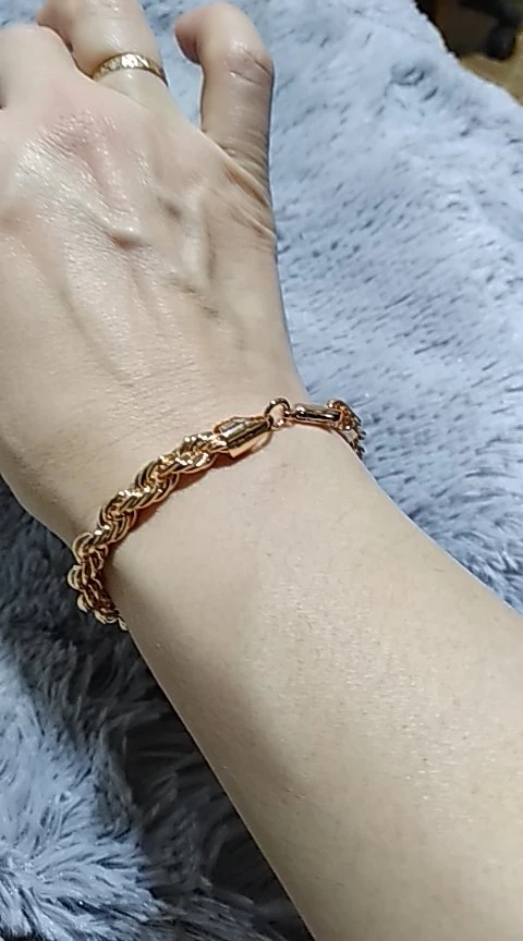 Что можно сказать про данный браслет? Заказывала я его недавно и пришел он достаточно быстро, меньше чем за две недели, чему была приятно удивлена. Сделан он качественно и выглядит прямо как на картинке. Очень правдоподобно и шикарно не отличишь от золота. Заказывала как подарок. Мне он понравился, но единственный минус - размер. Рука довольно тонкая, но налез в притык. Думала хоть немного висеть будет, а так браслет хороший.