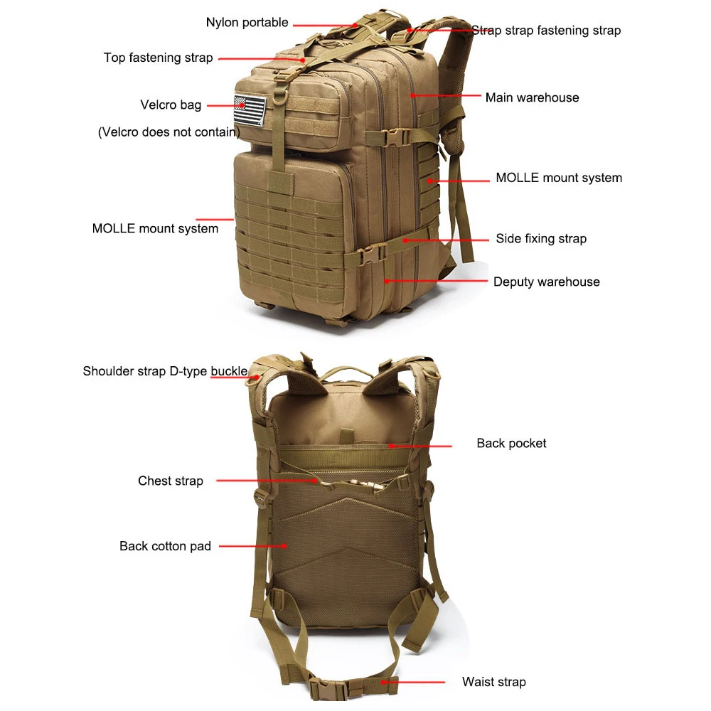 Вместительный военный армейский Тактический рюкзак для активного отдыха, треккинга, спорта, путешествий, рюкзаки MOLLE, сумки для кемпинга, пешего туризма, рыбалки и охоты