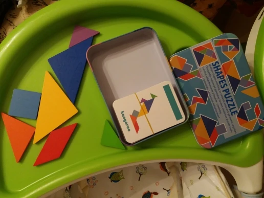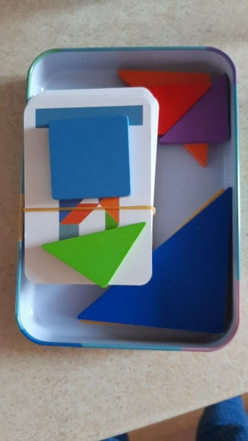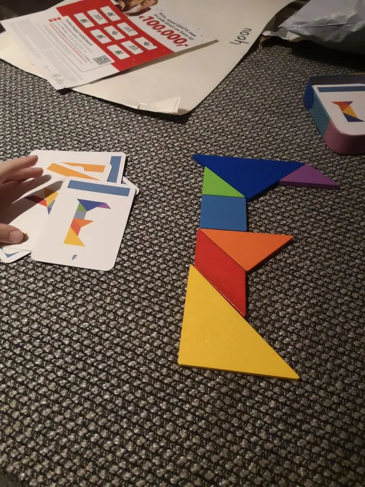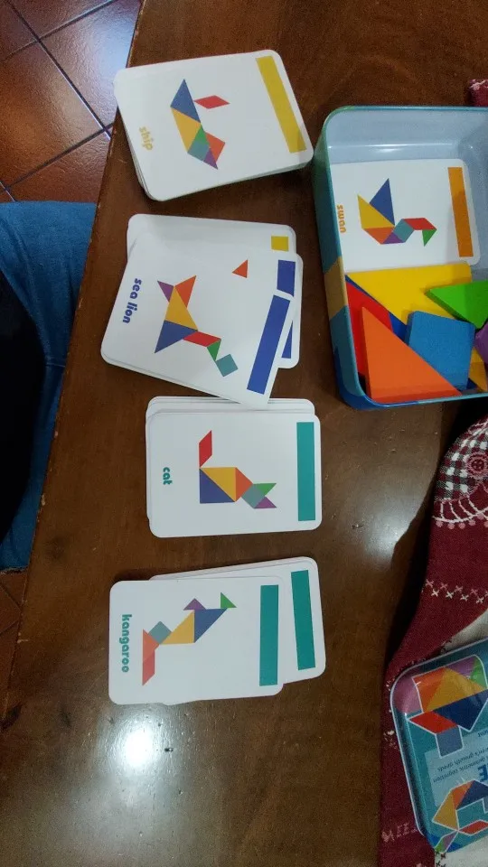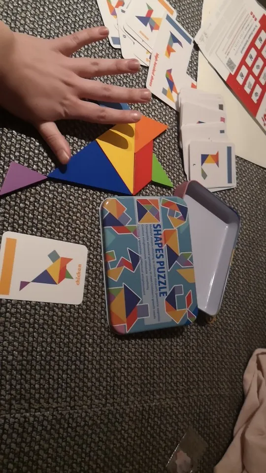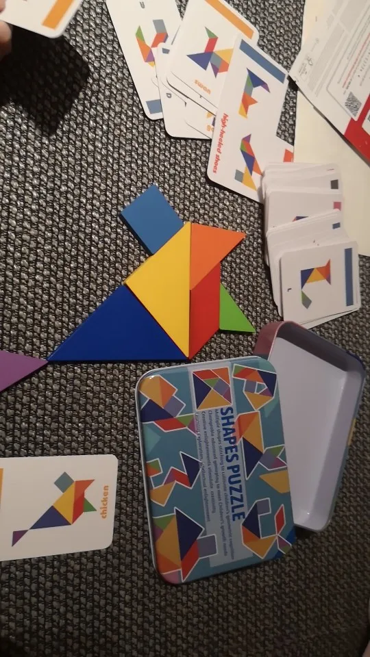Доставка занимает очень много времени, и статус пакета оказался как «сбой доставки» за месяц до его прибытия. Я думал, что посылка была потеряна. Теперь товар действительно хороший. Деревянные детали толщиной 5 мм с закругленными краями и красивой краской. Он поставляется с множеством карт с рисунками форм, которые могут быть сделаны и цвет кодируется уровнем сложности. Карты большие и изготовлены из высококачественного картона. Металлическая коробка-это идеальный размер для хранения всего и красиво разработана с рисунками форм. Стоит своих денег. Единственная проблема-проблемы со статусом доставки.