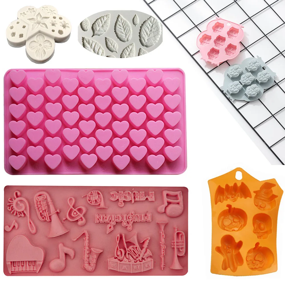 Формы силиконовые для шоколада, для самостоятельного изготовления, для украшения торта, инструменты для выпечки, аксессуары, листья сердца, сова, в форме музыкальных инструментов