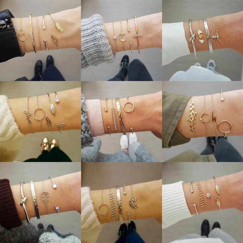 Набор круглых браслетов из сплава в стиле ретро, богемный металличе...