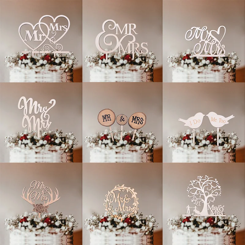 1 шт. Mr Mrs Деревянный Торт топпера, полые буквы Топ торты украшен...