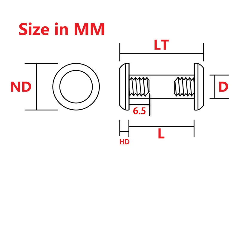 Размер 10Общая длина: 44,8 мм (с обеих сторон)Длина винта: 40Диаметр винта: 5Shen Диаметр головки: 7Shen толщина головки: 2,4Резьба: M4