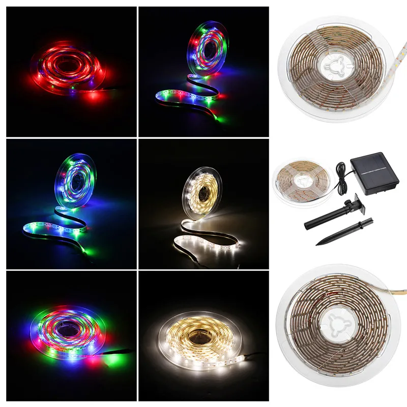 Светодиодная лента на солнечной батарее s SMD2835, 8 режимов, RGBтеплый белый, водонепроницаемая, IP65, светодиодная Праздничная лента, 2 В постоянного тока