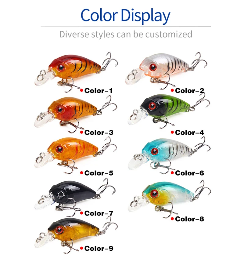 Тип: Искусственная приманка Название продукта: рыболовная приманка в виде гольяна Вес: 3,8 г Длина: 4,5 см Глубина погружения: Topwater Тип крючков: тройной крючок из высокоуглеродистой стали Цвет: 9 цветов цвет s с 2 рыболовными крючками Материал: ABS-пластик Упаковка: 1 шт. в полипропиленовом пакете