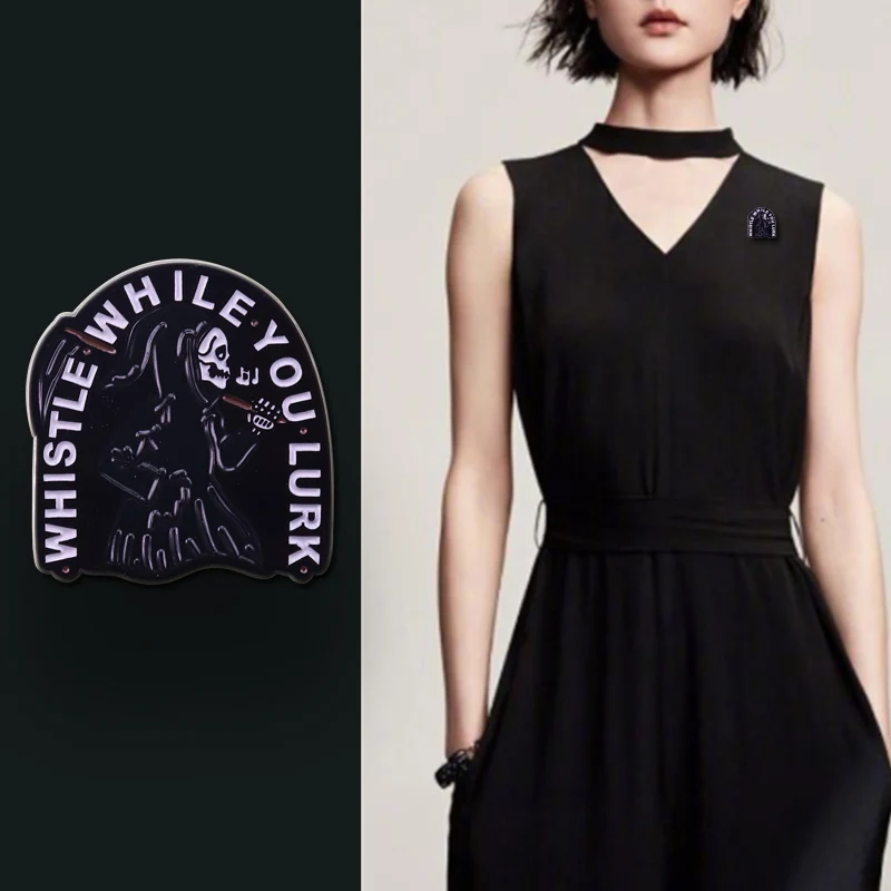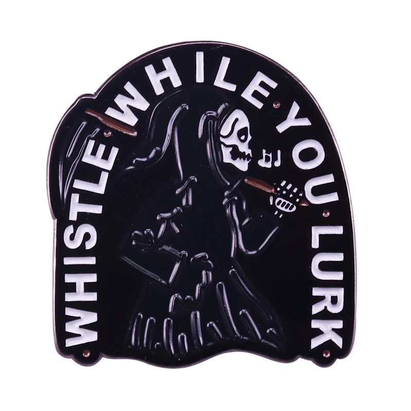 Свисток, когда вы прячуетесь, брошь, крутой и жуткий Мрачный Жнец, булавка, скелет, Scythe, новый значок для куртки