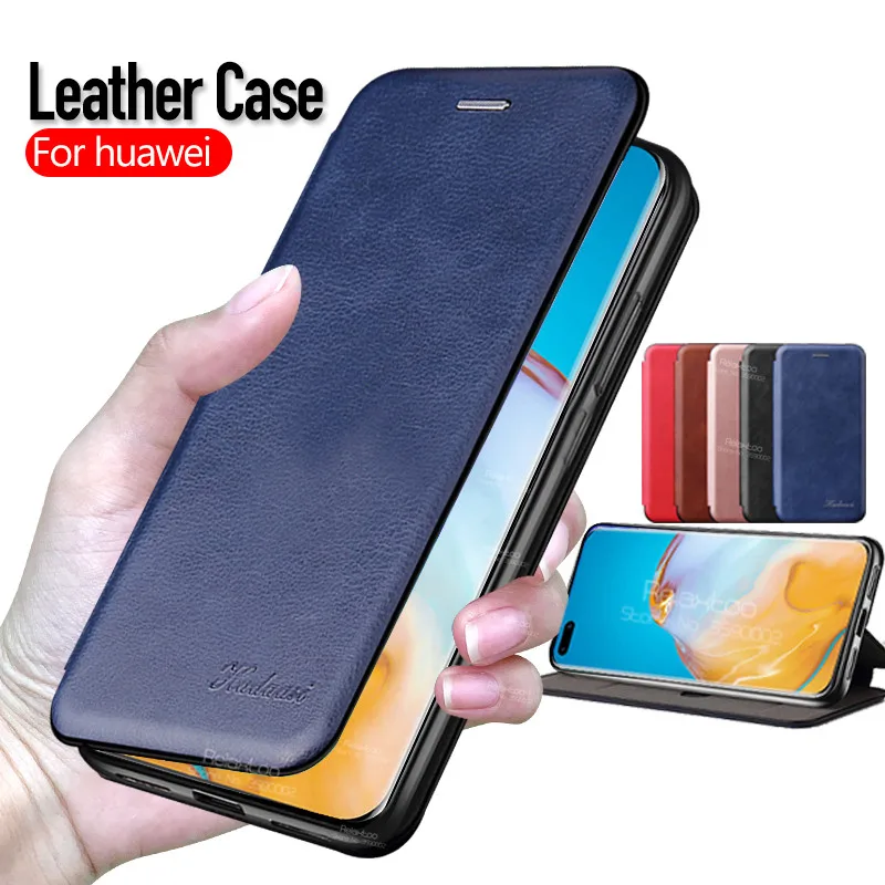 Кожаный чехол-книжка для Huawei P20-P40 Pro/Lite, Mate 20 Pro/Lite, Y9 Prime, P smart Z, Nova 5T, Honor 9/10 Lite, 10i, 9X, 20S, с магнитной застежкой
