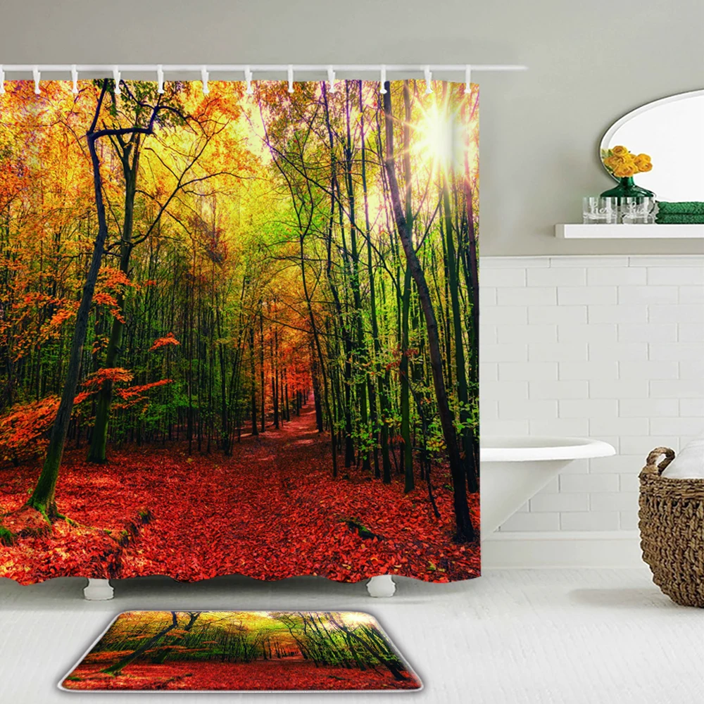 Лесной природный пейзаж, занавески для душа, высокое качество, водо...