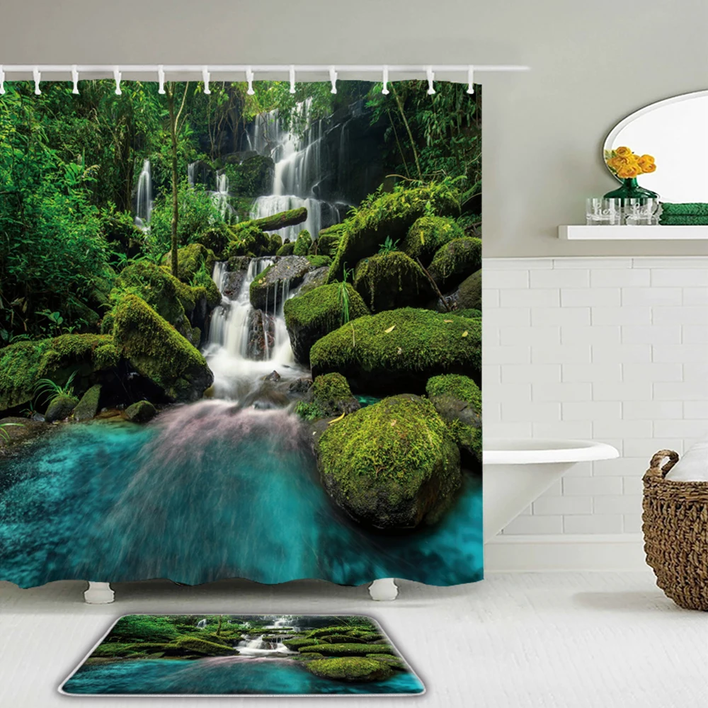 2 шт.компл. 3d занавеска для душа с натуральными лесными зелеными р...