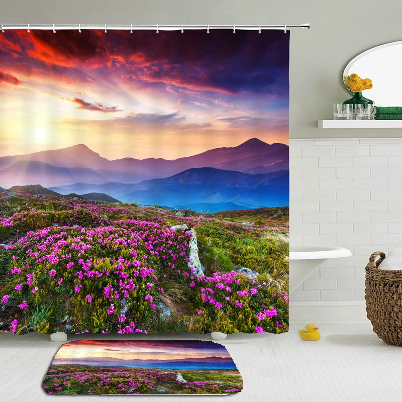 Высококачественная моющаяся душевая занавеска с природным пейзажем,...