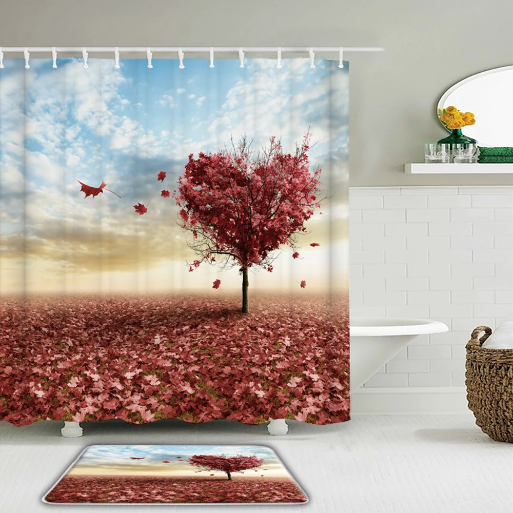 Занавеска для ванной с 3D красными розами и цветами, романтичная Во...