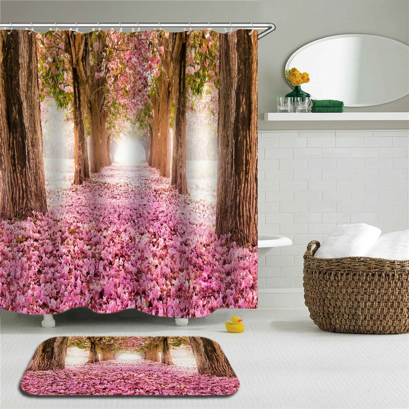 Водонепроницаемая занавеска для душа из полиэстера с 3D цветами