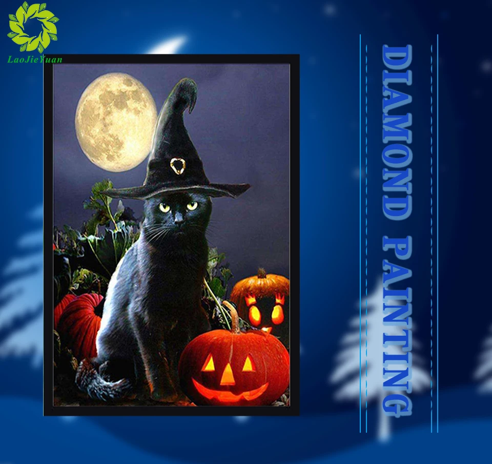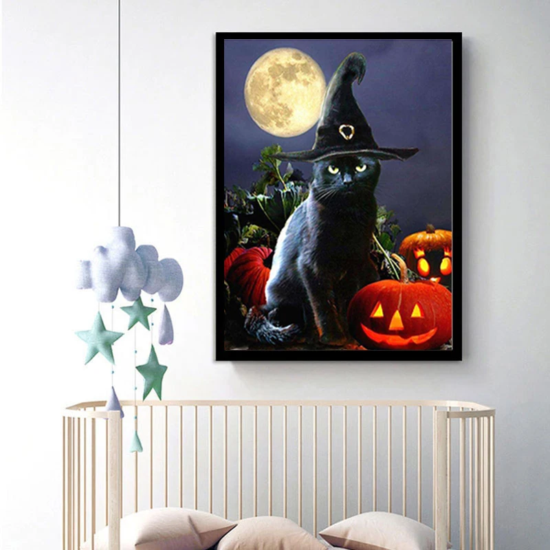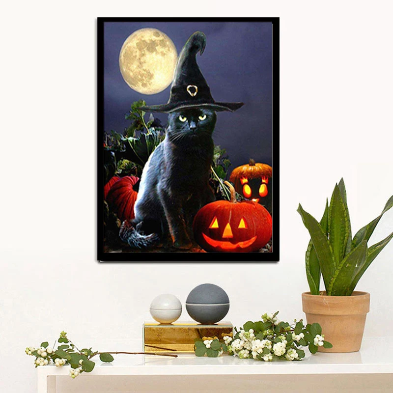 Diy Алмазная Вышивка Полный галька Круглый Алмазный Набор крестиком Хэллоуин кошка Алмазная картина украшение для дома