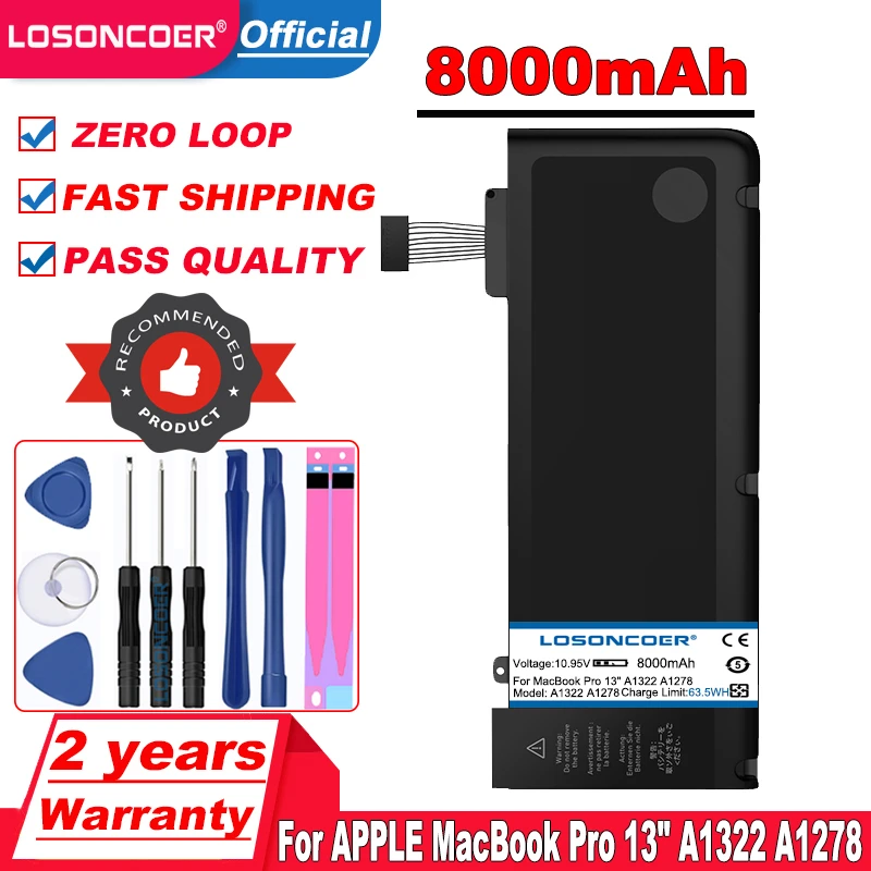 Аккумулятор A1322 A1278 8000 мАч для Apple Macbook Pro, 13 дюймов, ...