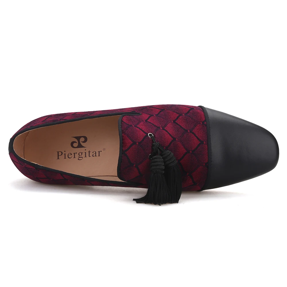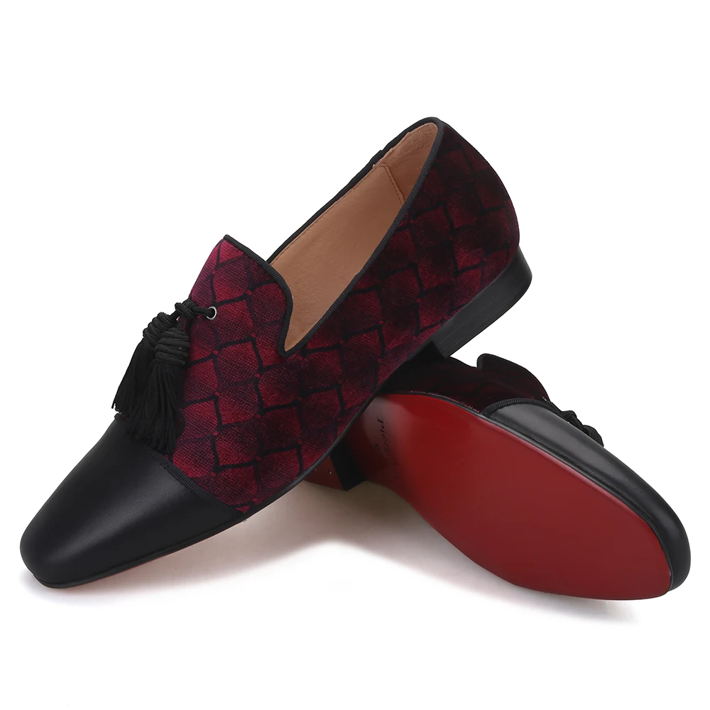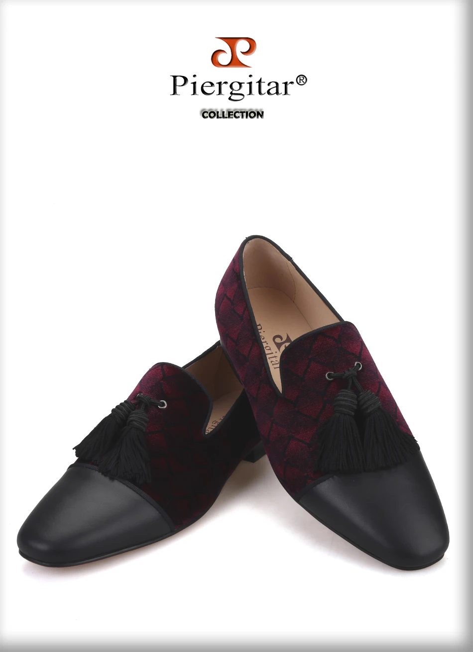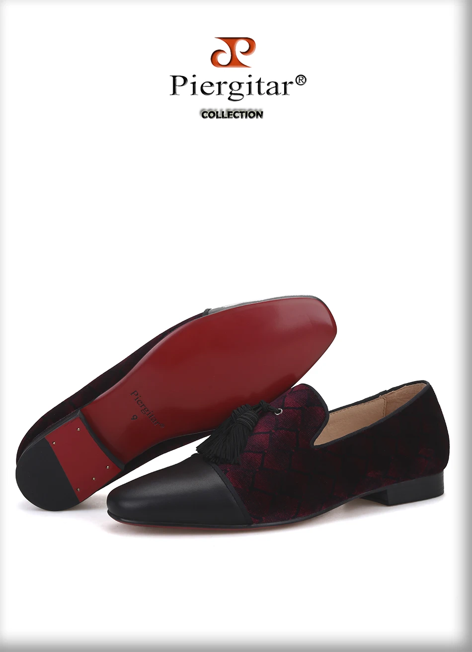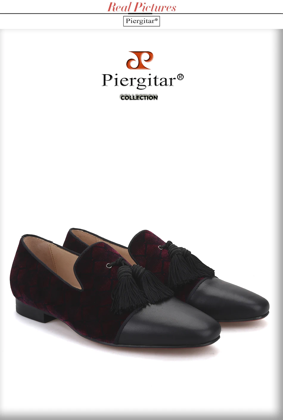 Piergitar 2020 новый дизайн фуксия клетчатая бархатная Мужская обувь с бахромой ручной работы мужские вечерние Лоферы для выпускного вечера с красной подошвой размера плюс
