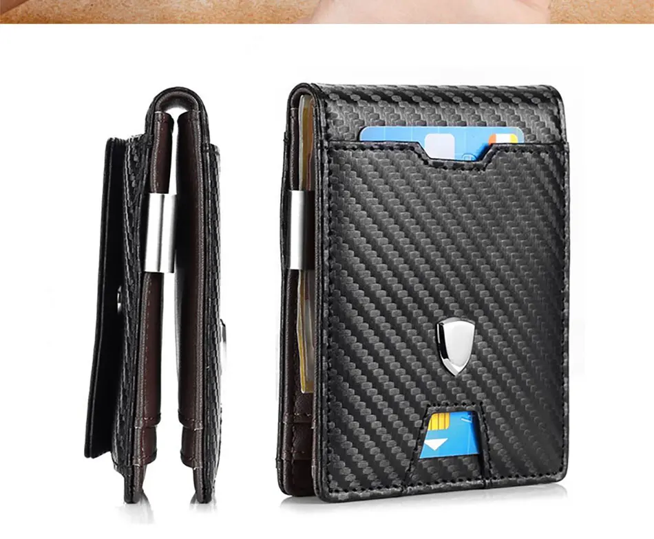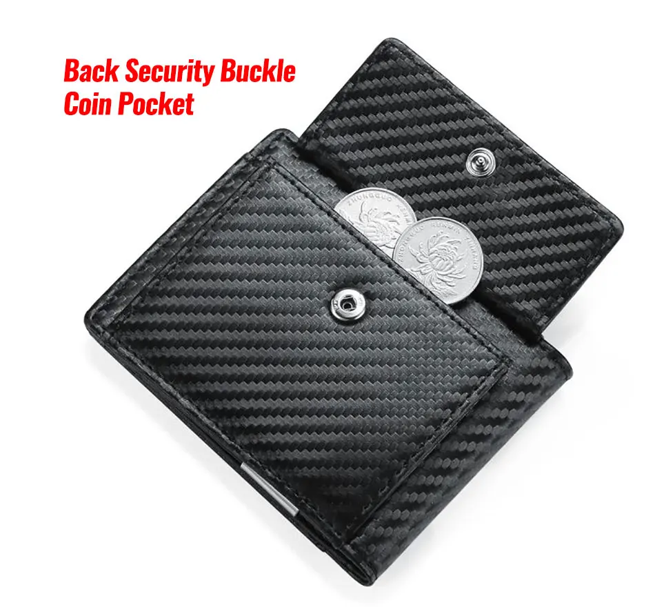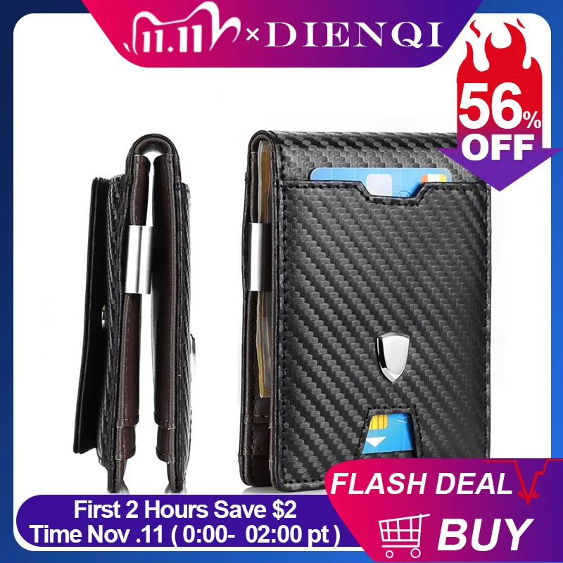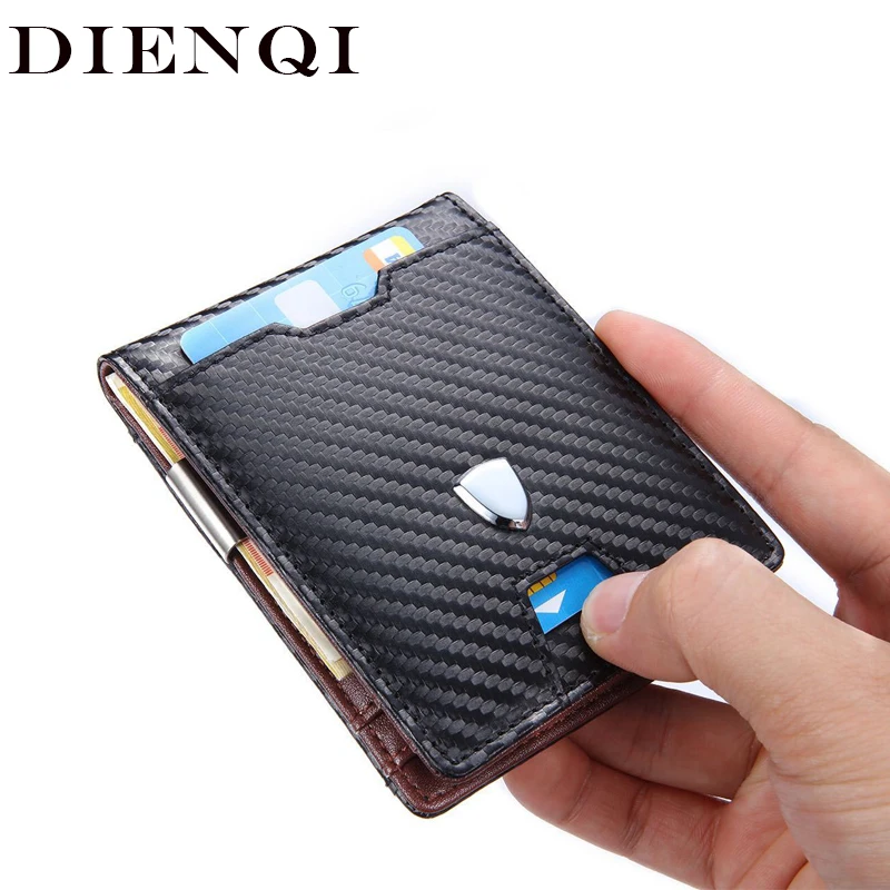 DIENQI Rfid мужские бумажники из углеродного волокна, держатель для карт, мужской черный короткий кошелек, тонкий 2020 маленький кожаный тонкий мини-кошелек Magic