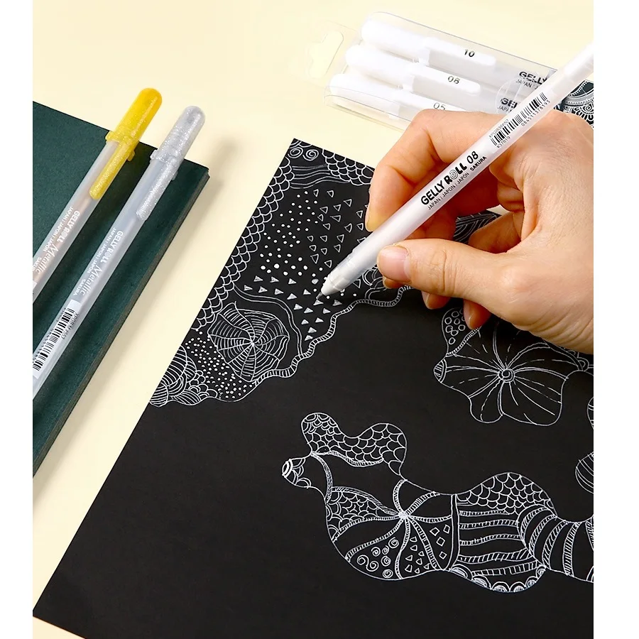 Маркер для рисования Sakura Gelly, ролик ручка, базовый Маркер Белого, золотого, серебряного цветов, 05, Fine 08, средний, 10, смелый, A6499
