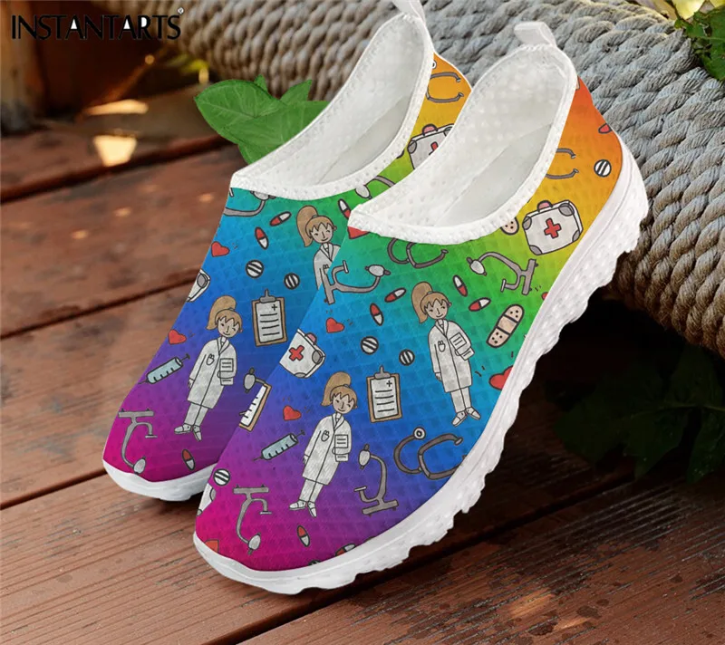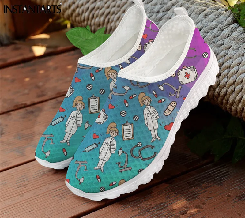 INSTANTARTS Лидер продаж обувь Сестринское дело Премиум эскиз физио женские Ptinting мультфильм медсестра туфли с сеточной подкладкой на плоской подошве без застежки; Кроссовки; Zapatos Mujer