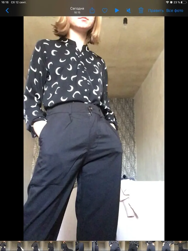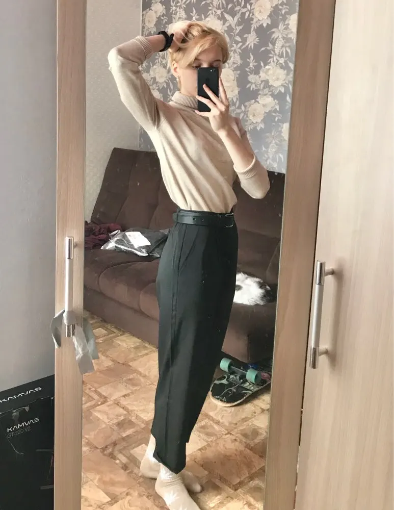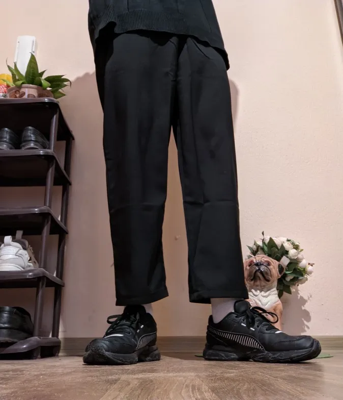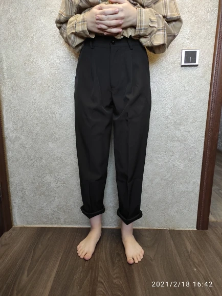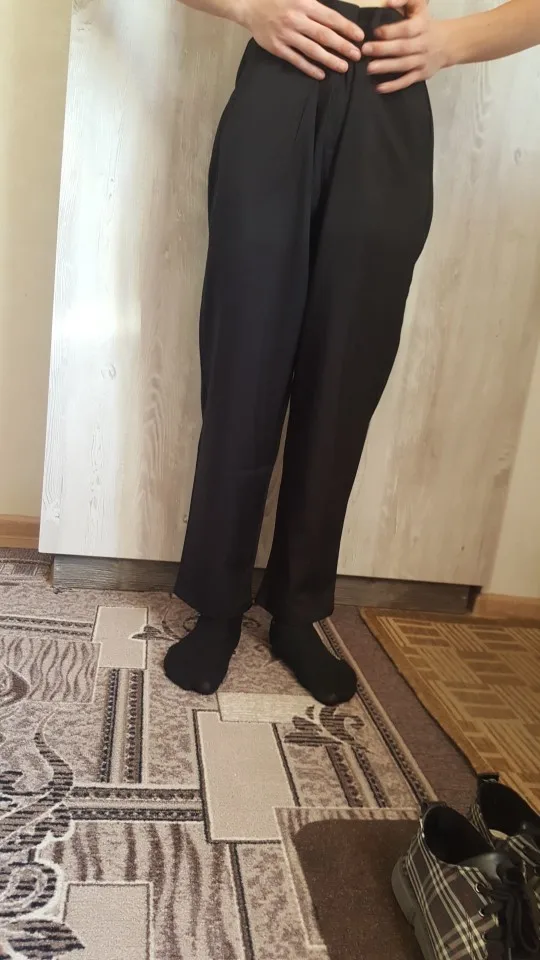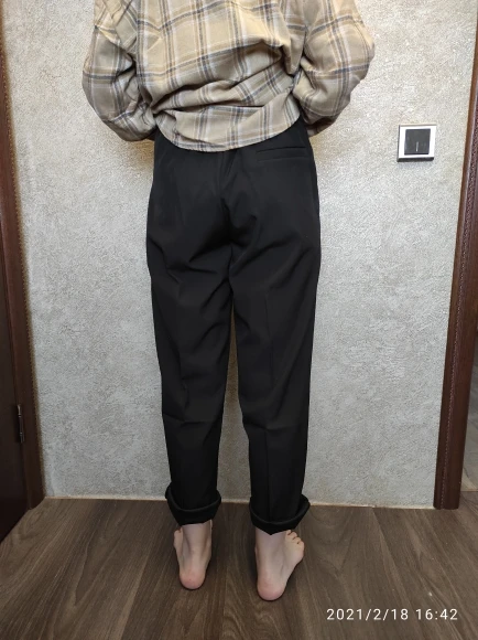 Отличные брюки - не электризуются, на лето/весну самое то. На фото продавца кажутся плотнее, но по другим отзывам была готова к тому, что они будут тонкими. Лично я профейлила с размером - хотела чтобы они были свободными и в итоге на талии слишком широкие. Перетягиваю ремнем и супер странно топорощатся сзади