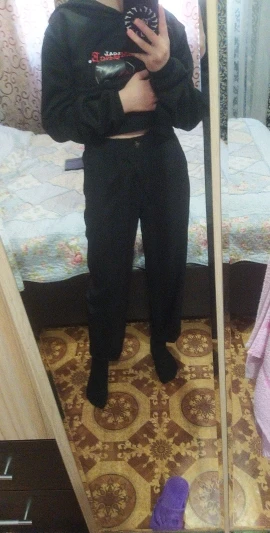 мой рост 174см параметры 80-64-90 вес 52кг заказывала ххл, они мне, естественно, большие в талии и висят на бедрах. я думала они будут длиннее. когда висят на бедрах, то низ достает до щиколоток, подвороты, к сожалению, сделать не могу, иначе штаны будут мне по колено штаны тонкие, в некоторых местах торчат нитки как на фотографии, но это вообще не страшно с продавцом не общалась, выслал товар на следующий же день, брала за 1200, посылка пришла за 25 дней если есть вопросы inst: mantis._.d2 я не кусаюсь