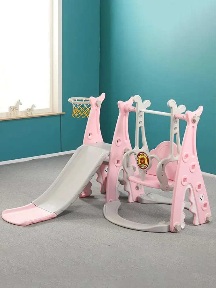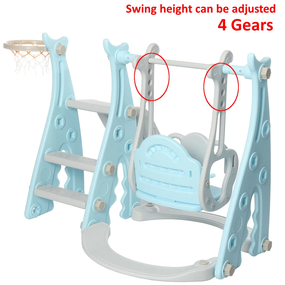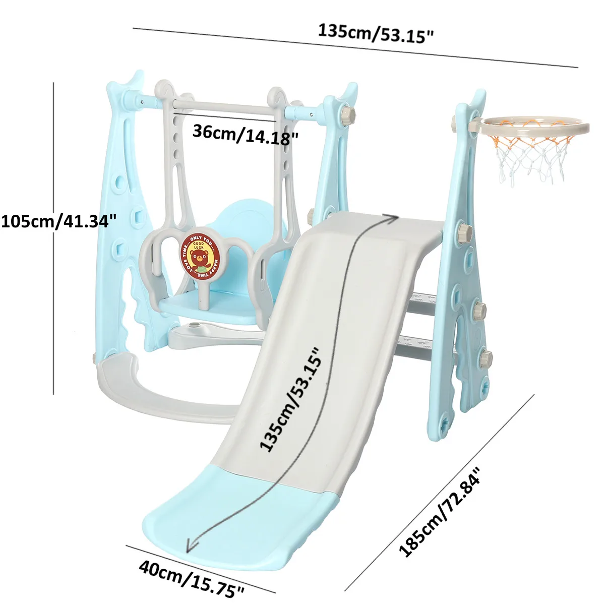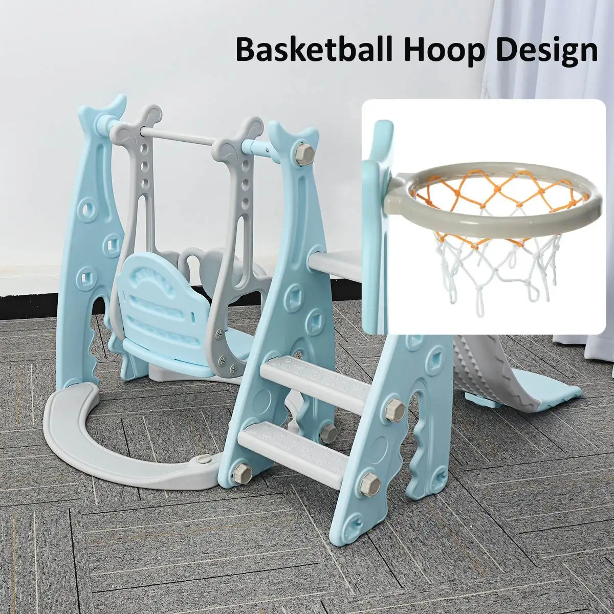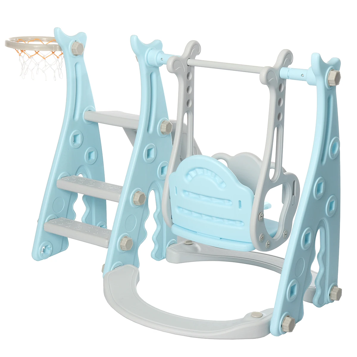 3 в 1: набор слайдов, качелей и баскетбольных обручей.