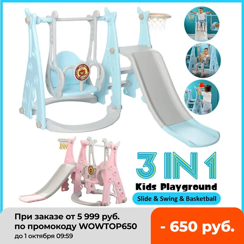 3 в 1 Детская Раздвижная доска Seesaw, домашняя детская игровая площадка, пластиковая горка, набор игрушек для баскетбола, комнатные качели для детского сада