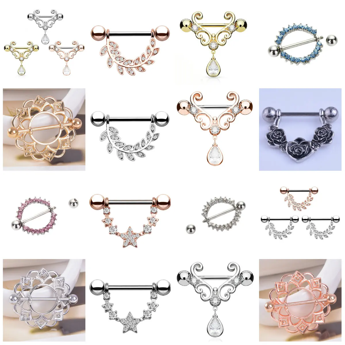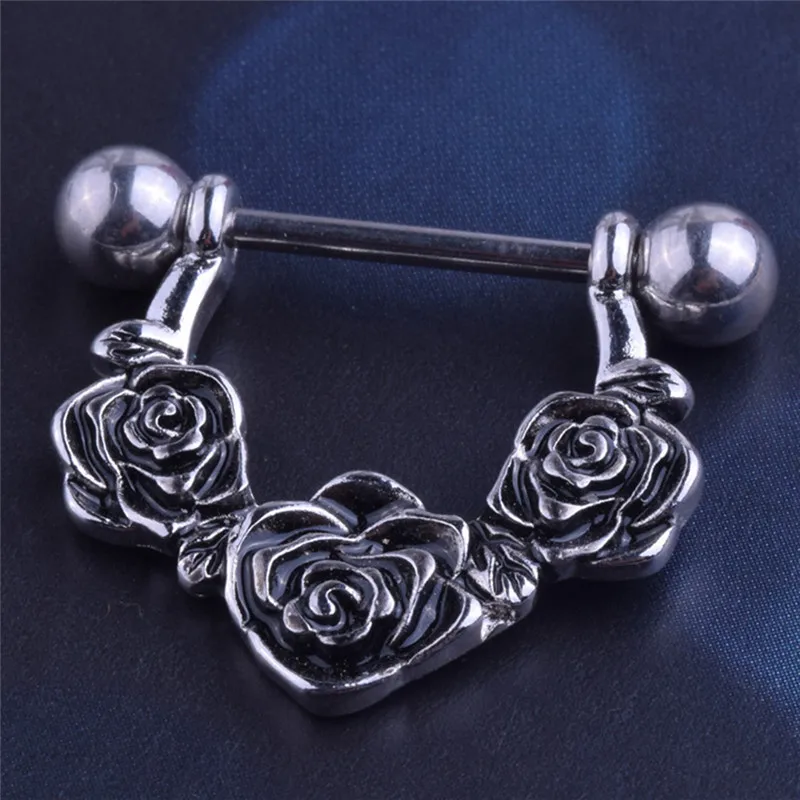2018 модные кольца из нержавеющей стали для пирсинга сосков с розами, 1 шт., 14 г, женские и мужские сексуальные ювелирные изделия для тела, подарок для вечеринки, декор для красоты