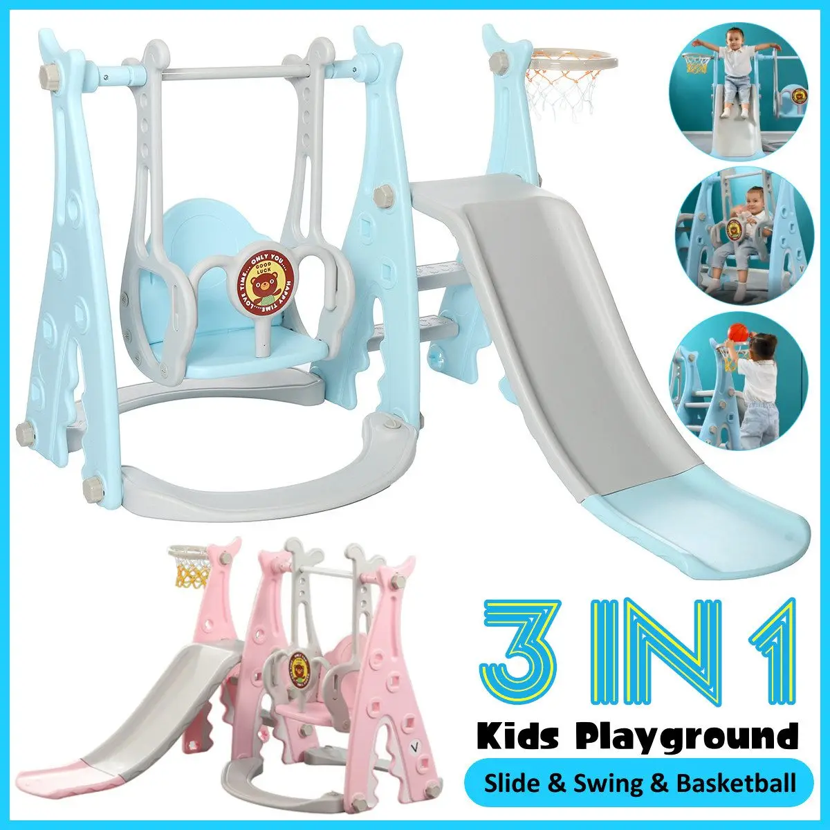 Детская Раздвижная доска 3 в 1, детская игровая площадка, пластиковая горка, баскетбольная игрушка, набор комнатных качелей для детского сада