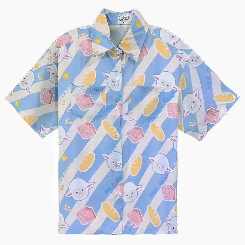 Блузка женская оверсайз с длинными рукавами, в стиле Харадзюку, с мультяшным принтом ягненка, одежда для девочек-подростков, лето 2021