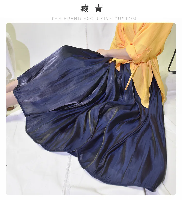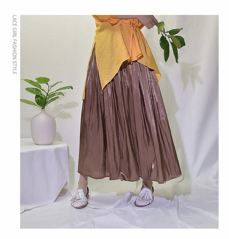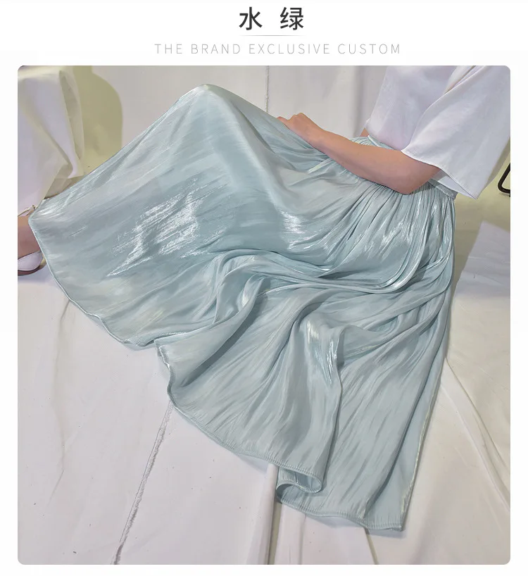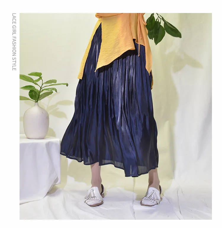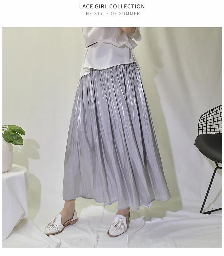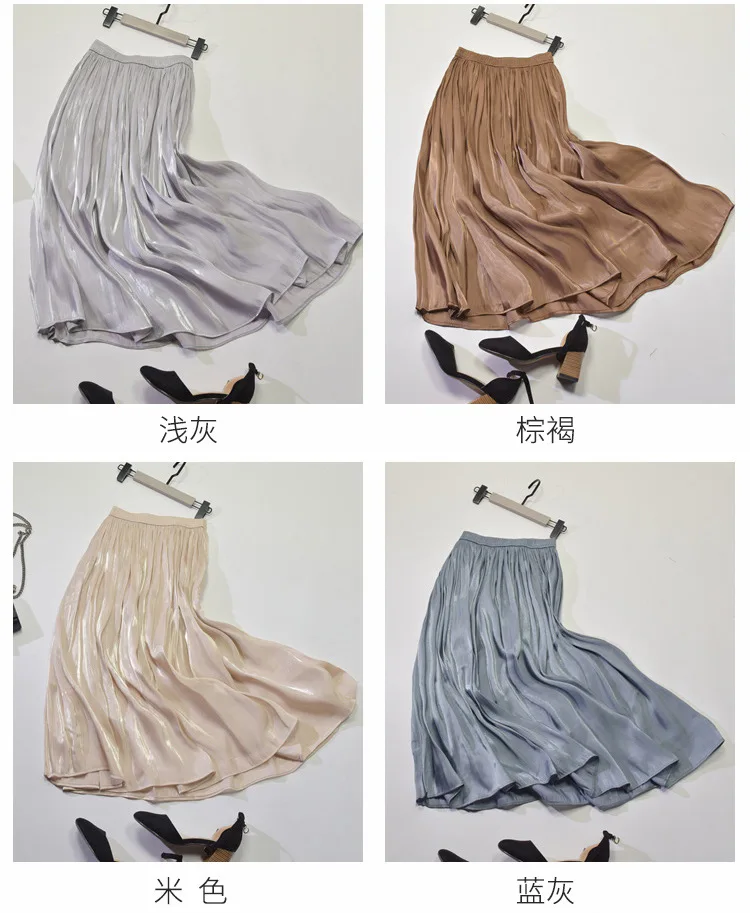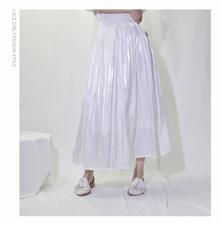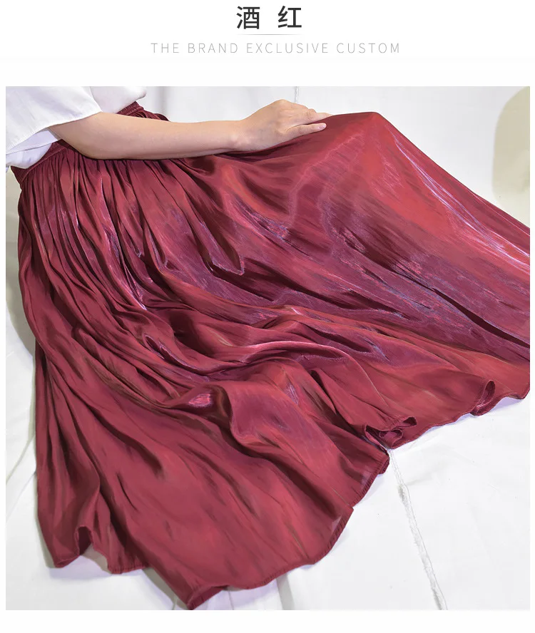 Шелковая атласная юбка, длинная Повседневная Женская юбка, плиссиро...