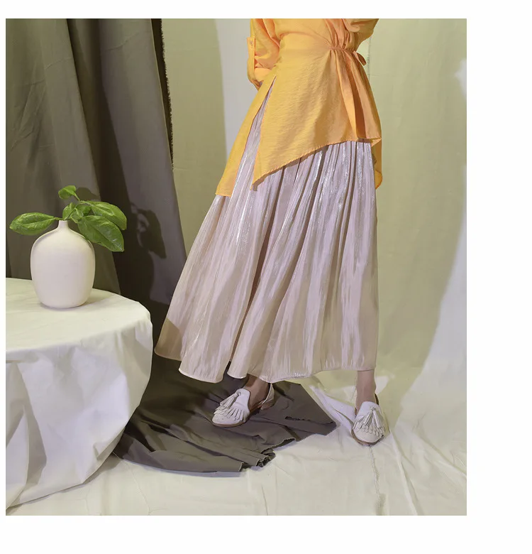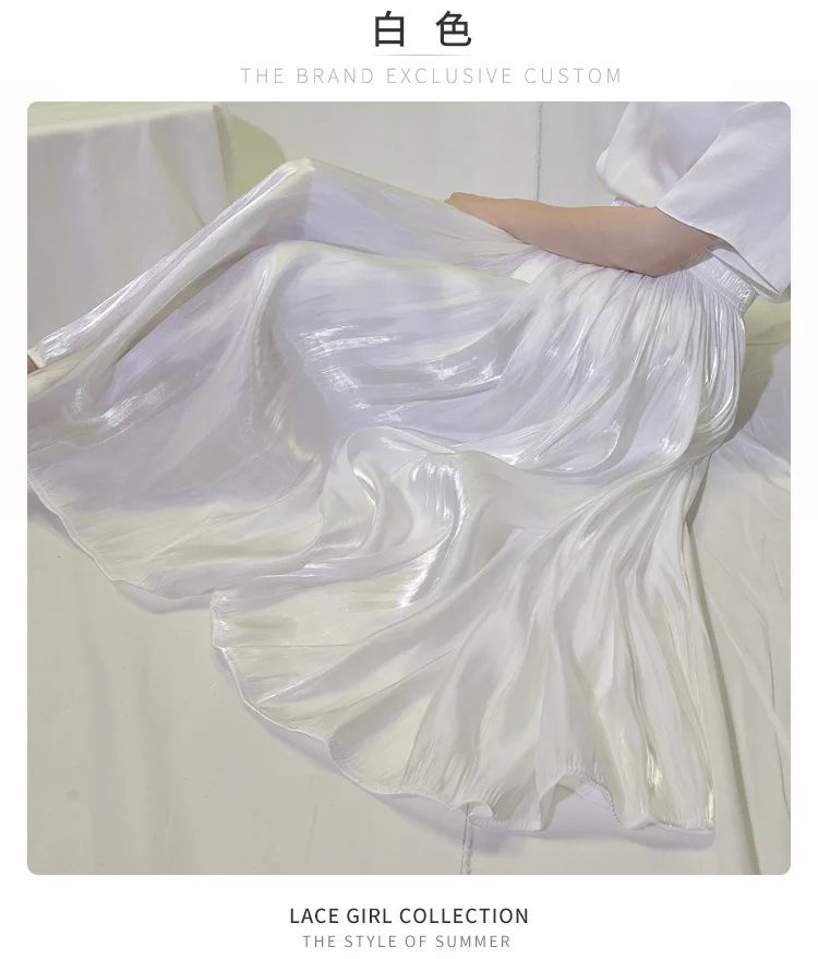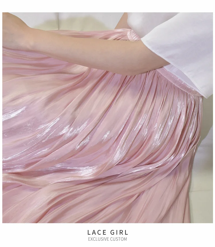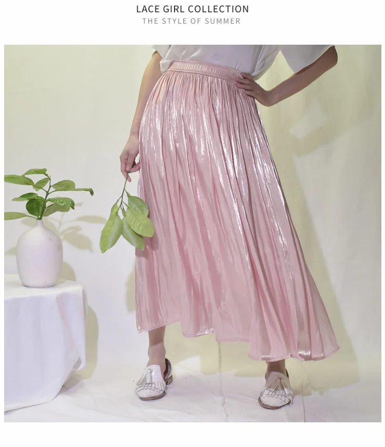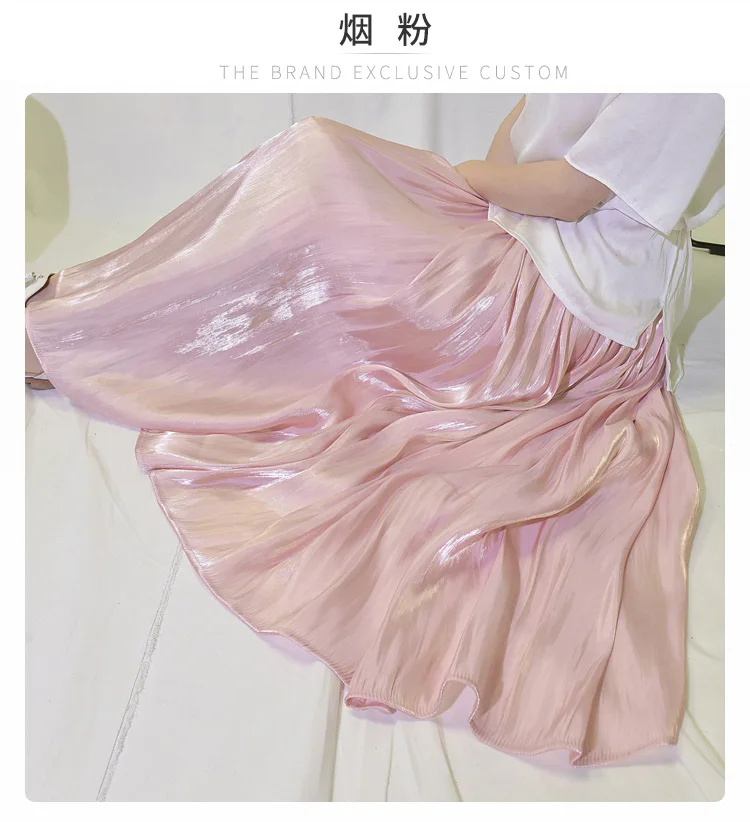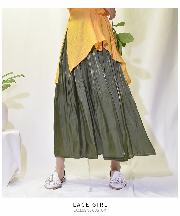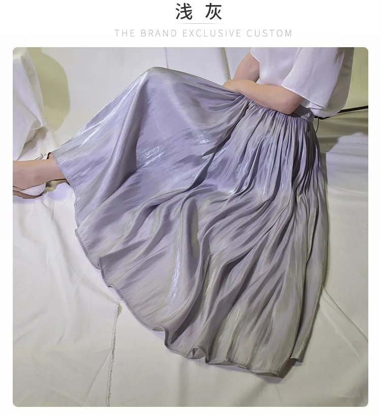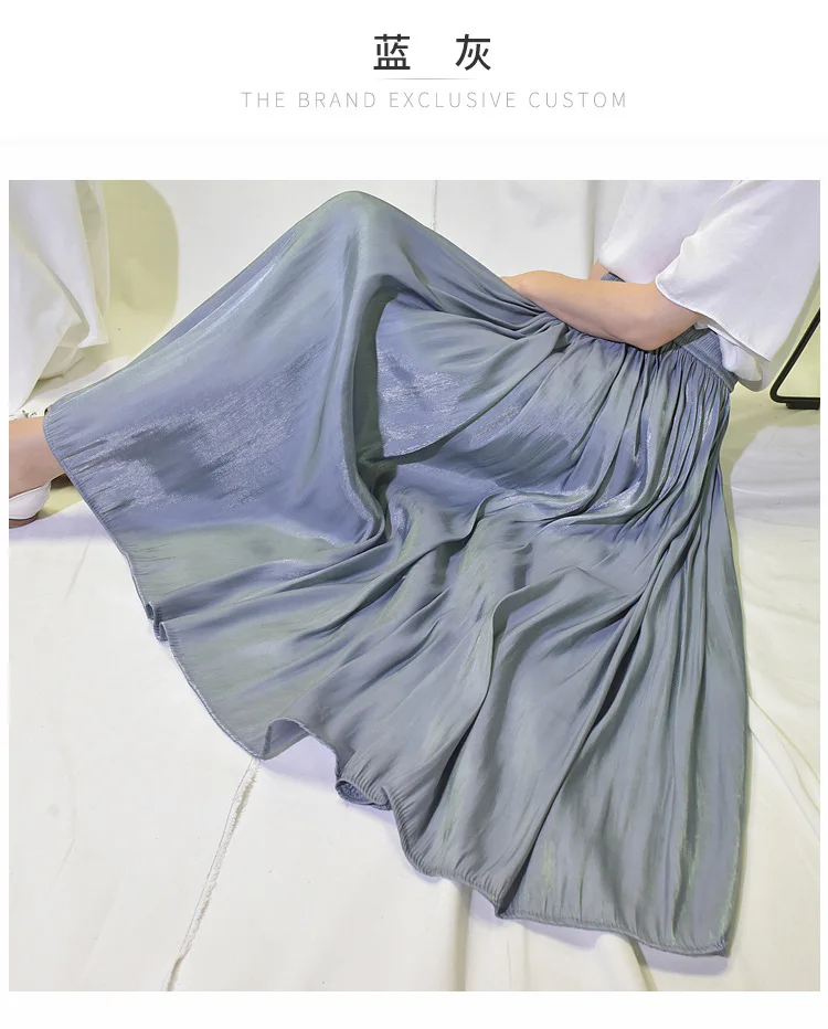 Шелковая атласная юбка, длинная Повседневная Женская юбка, плиссиро...