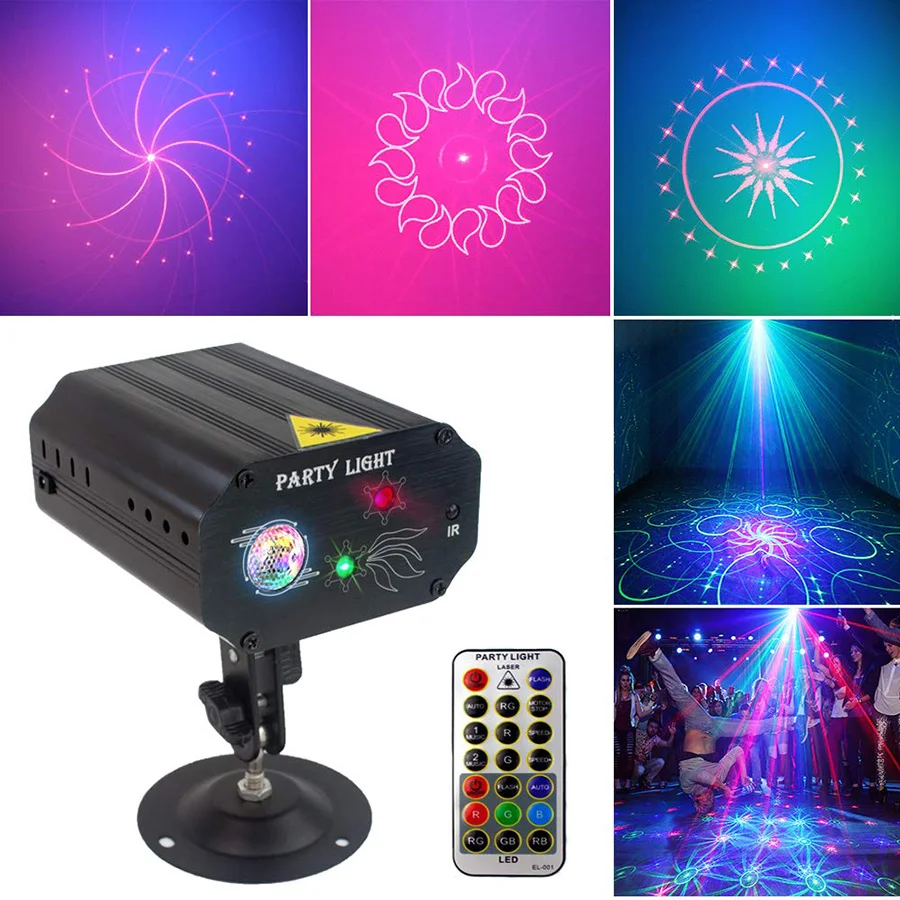 Светодиодный светильник для дискотеки, вечерние, с голосовым управлением, красный, зеленый, музыкальный лазерный проектор, для рождественского клуба, DJ, дискотека, вечерние шоу, сценический светильник