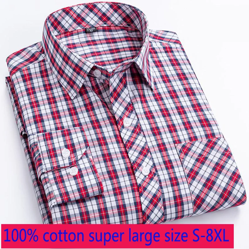 Новое поступление, супер большие модные летние тонкие свободные повседневные рубашки с длинным рукавом, модель 100% подушки из чистого хлопка в клетку 8XL