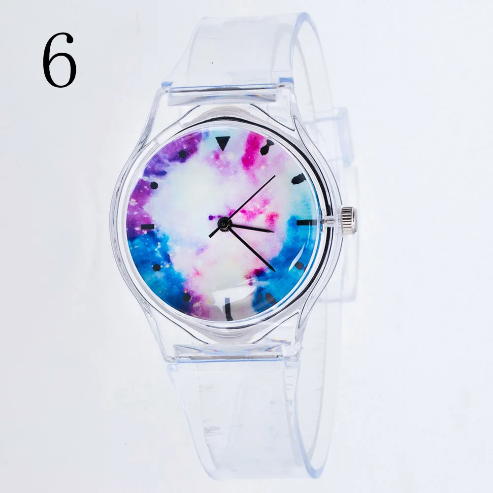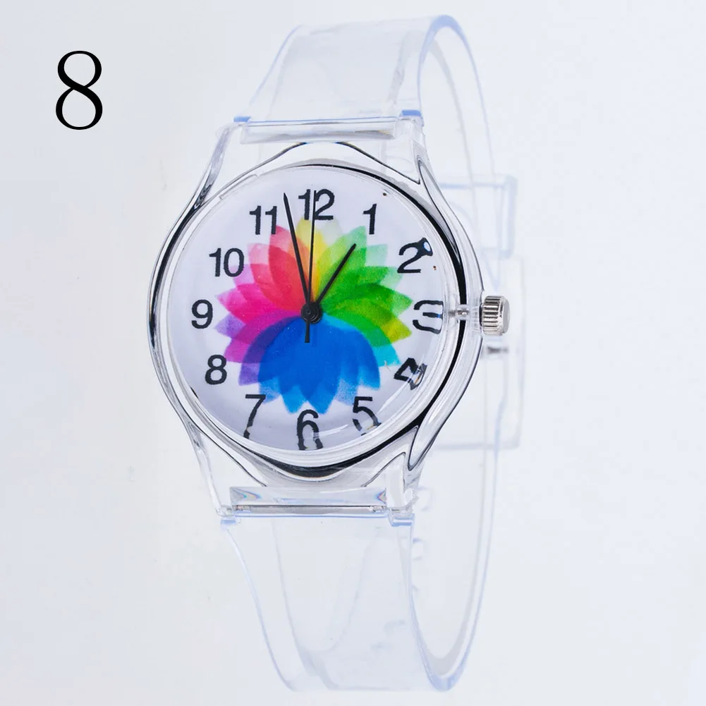 Модные женские наручные часы, пластиковые Мультяшные часы, прозрачный ремешок, студенческие спортивные часы, женские повседневные кварцевые часы DOD886