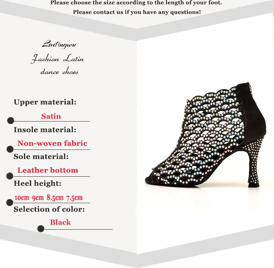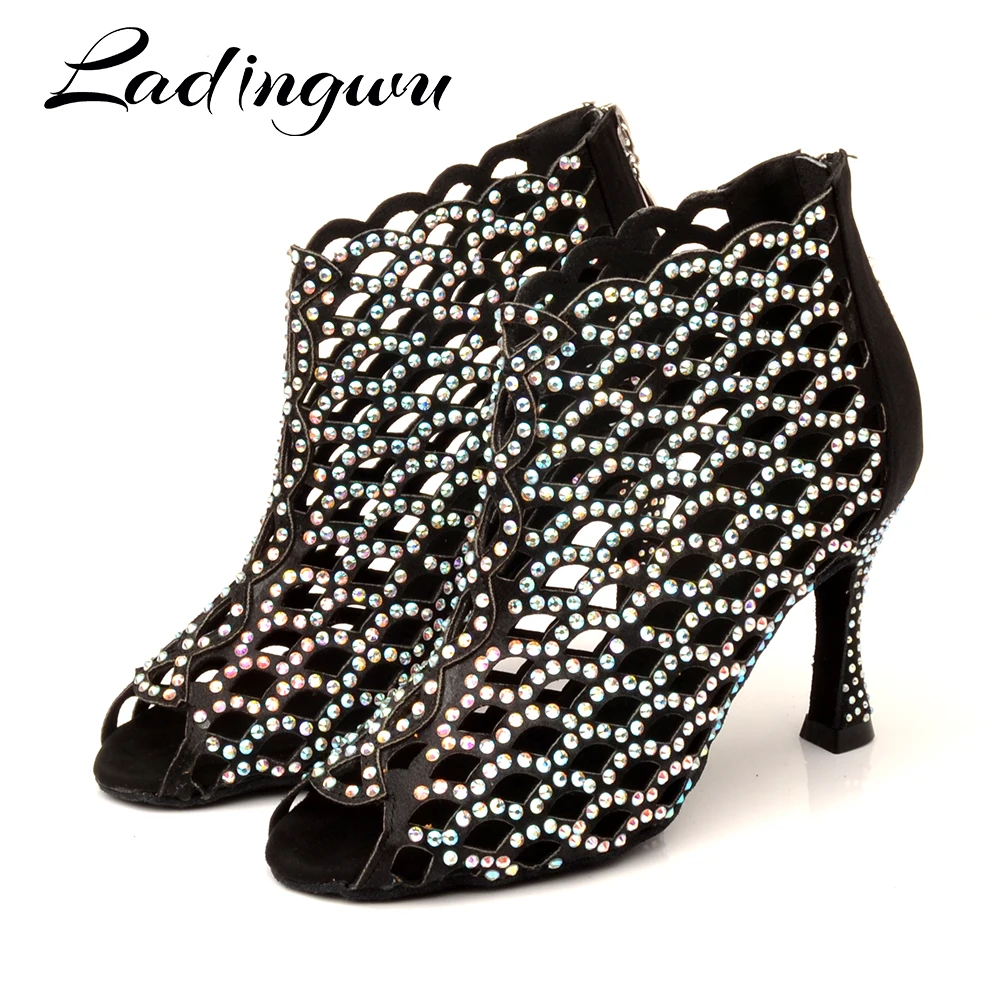 Женские ботинки для латинских танцев Ladingwu, черные ботинки на мя...